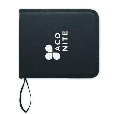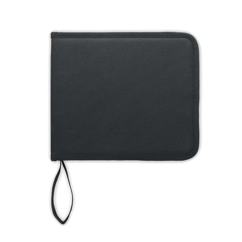 Mallette zippée en RPET 450D incluant 40 pièces :crayons de couleur, crayons graphites, taille-crayon, 1 brosse, 1 gomme, 1 couteau à dessin. Pour adultes uniquement.