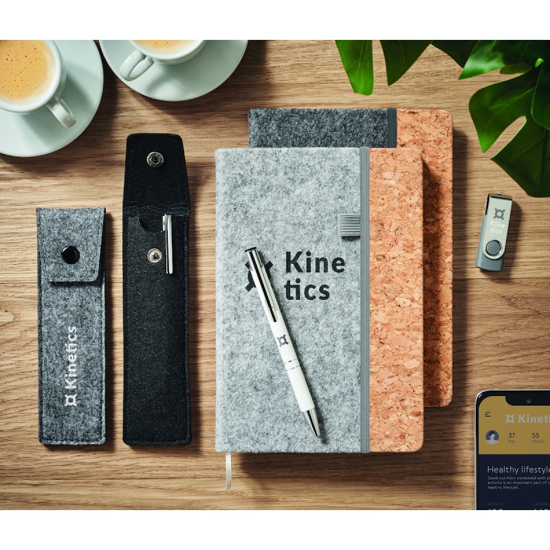 Étui à stylo en feutre RPET avec fermeture par bouton pression (peut contenir 2 stylos non inclus).