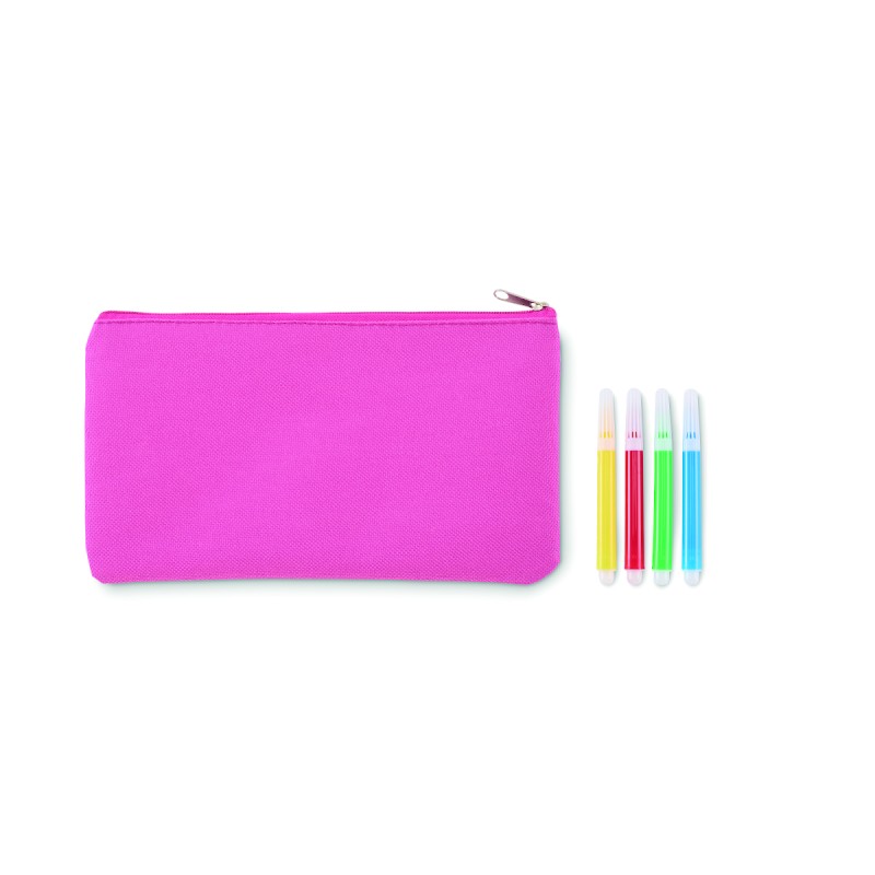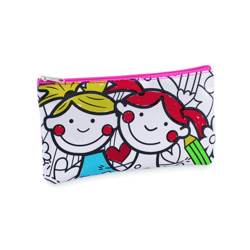 Trousse à crayons en polyester 600D à colorier avec 4 feutres.