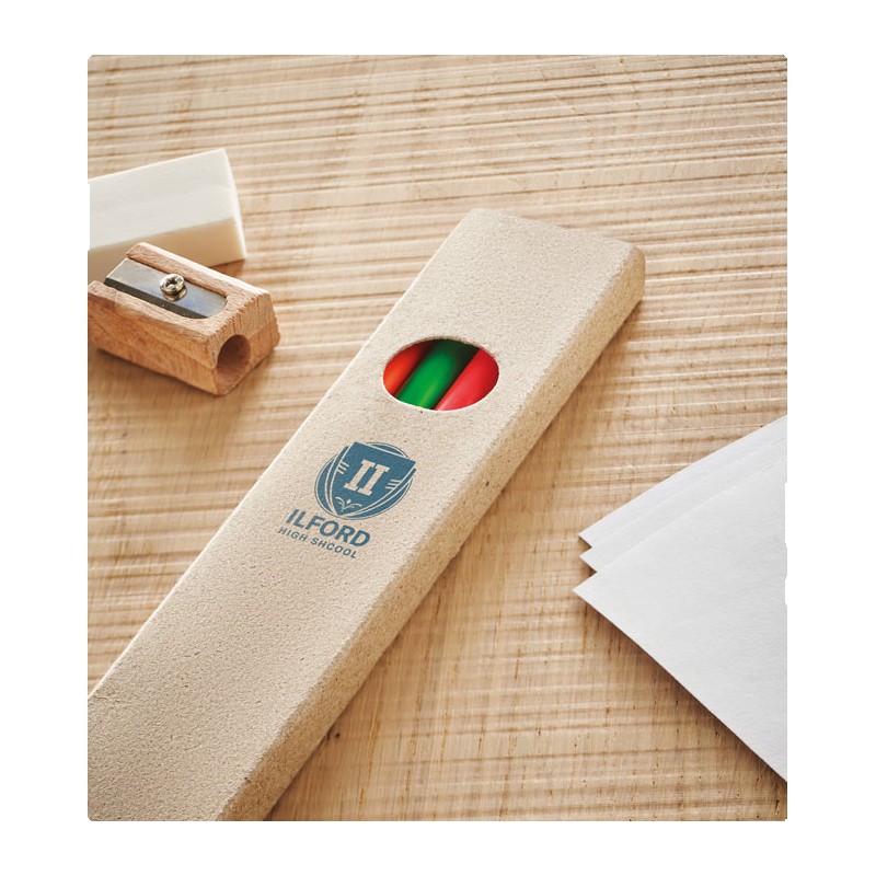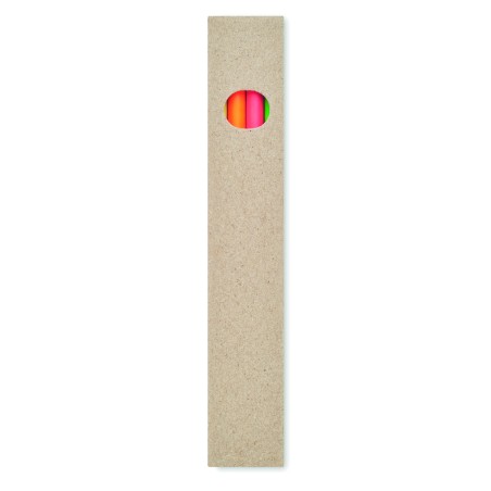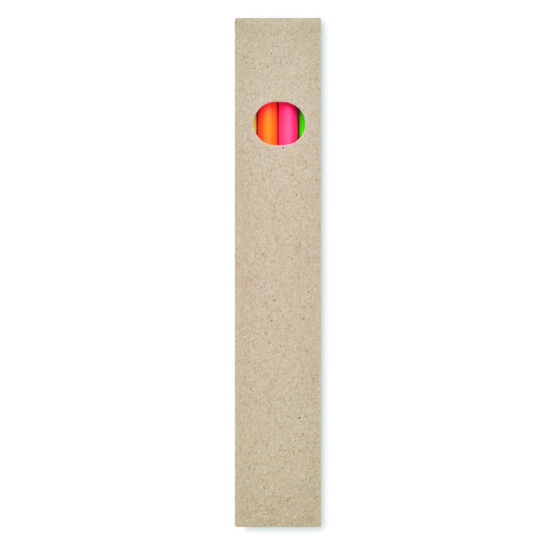 Set de 4 crayons de couleur surligneurs dans une boîte en papier recyclé.
