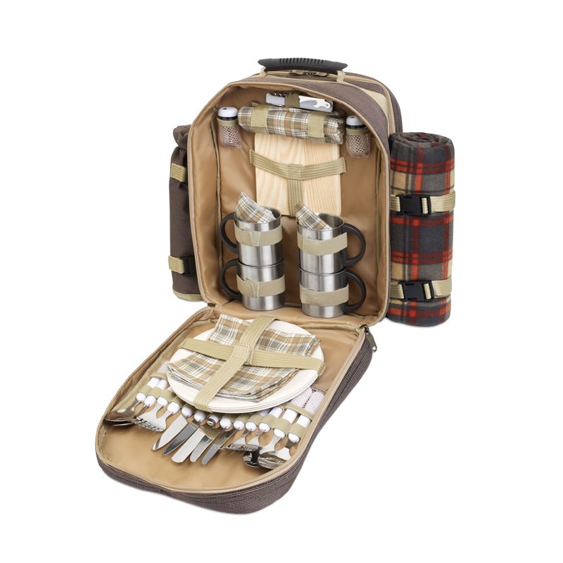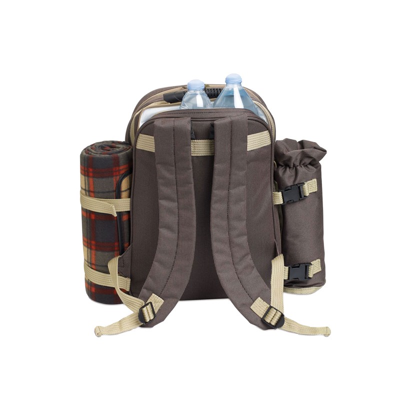 Sac (600D) de pique-nique pour 4 personnes. Inclus: Couverture, porte bouteille et accessoires de table de qualité.