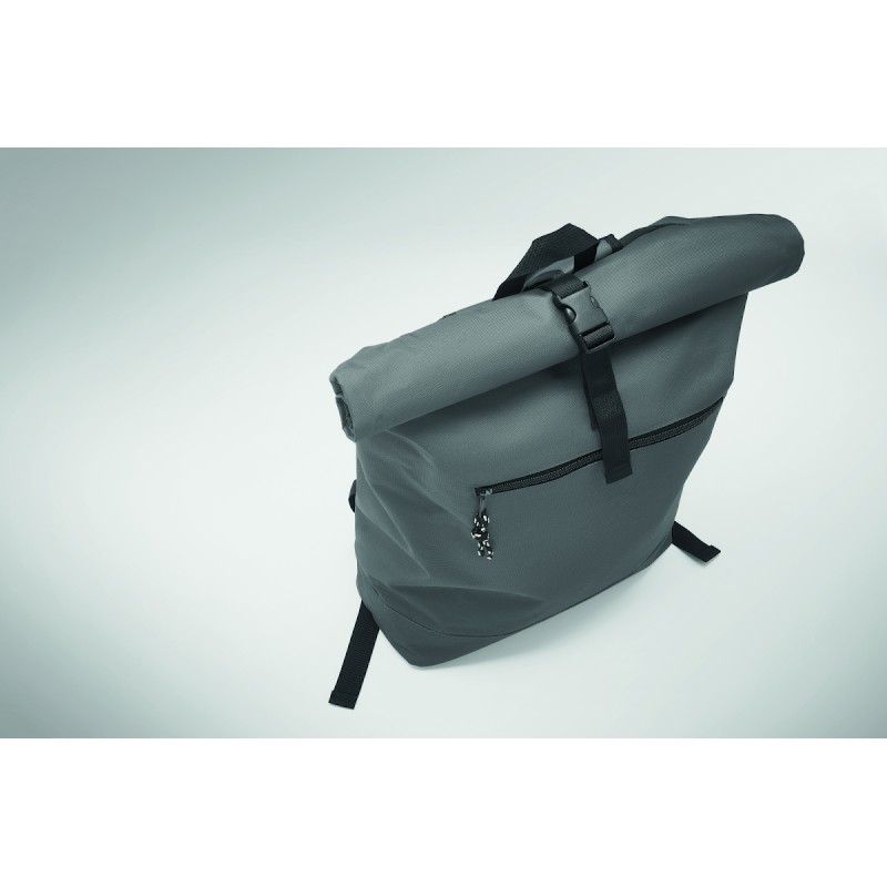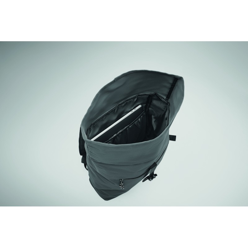 Sac à dos pour ordinateur portable de 15 pouces en polyester 600D avec dos rembourré et renforcement de la base. Poche frontale zippée. Doublure en 210D.