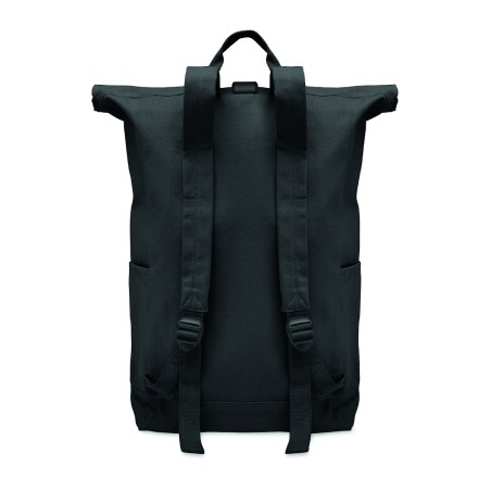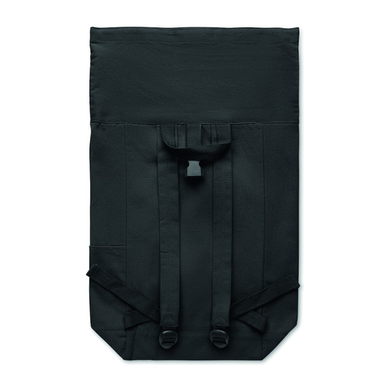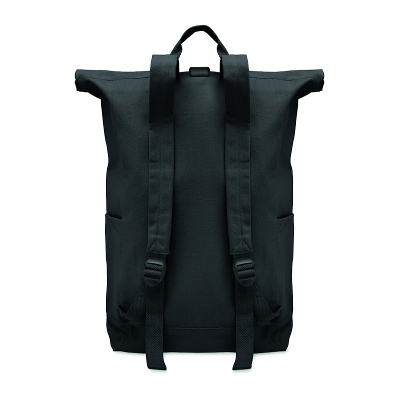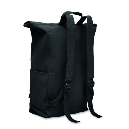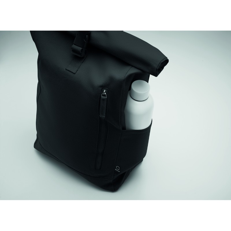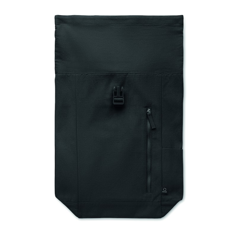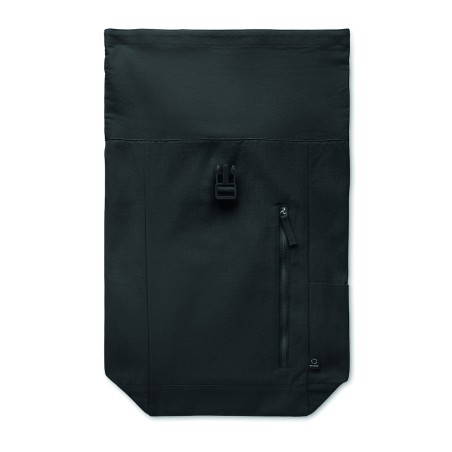 Sac à dos enroulable avec fermeture auto-agrippante en coton recyclé (80%) et polyester recyclé (20%) de 390 gr/m². Poche frontale zippée.