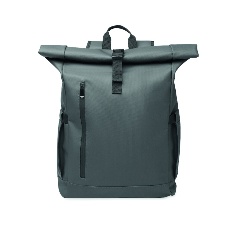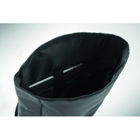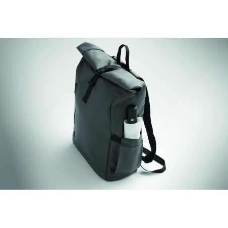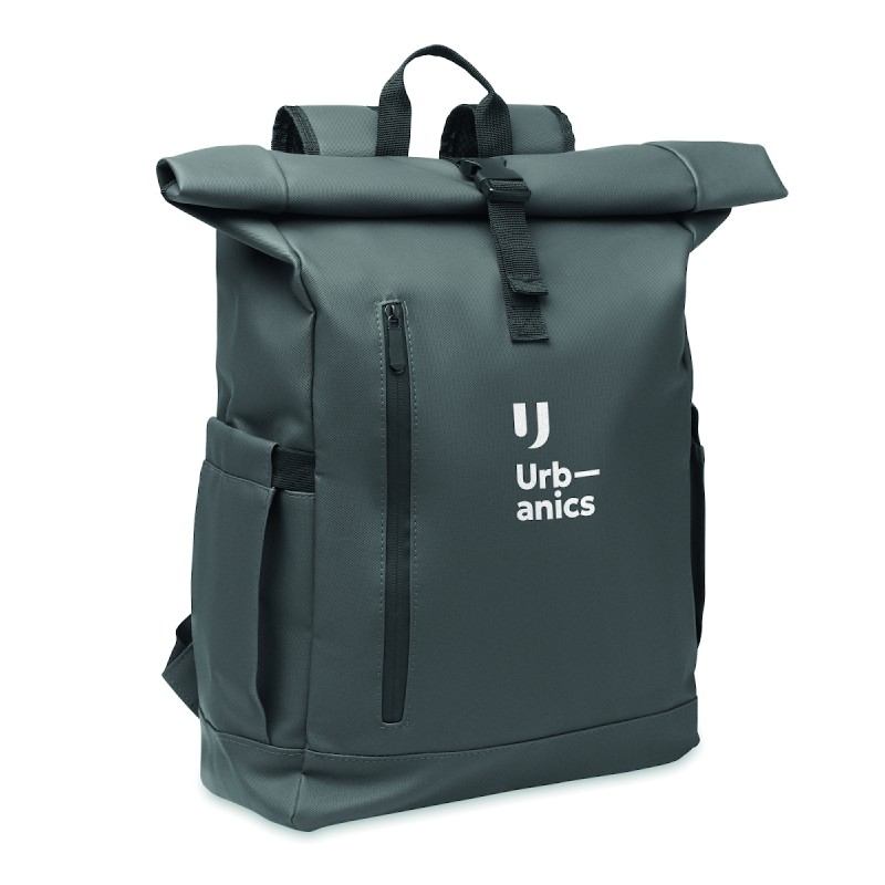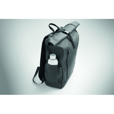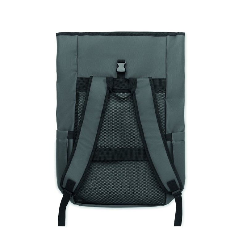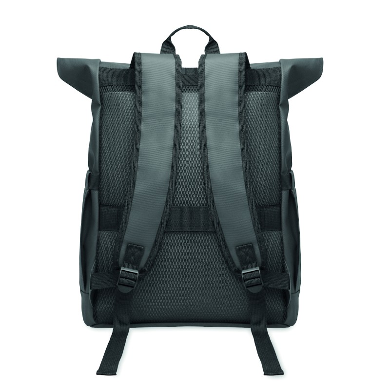 Sac à dos pour ordinateur portable en polyester 600D RPET et PU et doublure en polyester RPET. Dos renforcé en maille avec poche zippée et sangle pour trolley. Bandoulière renforcée avec finition intérieure en maille.