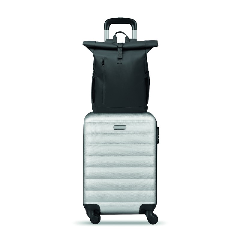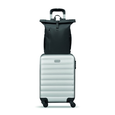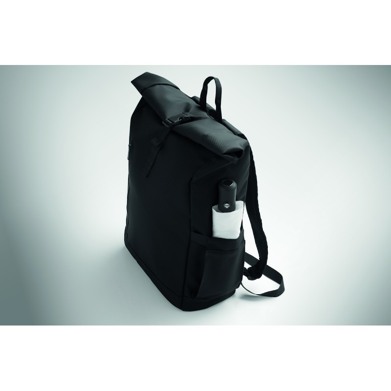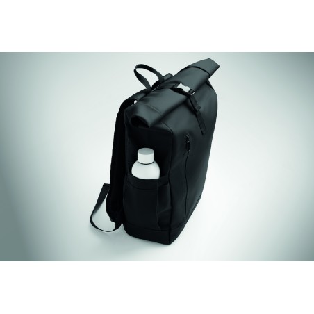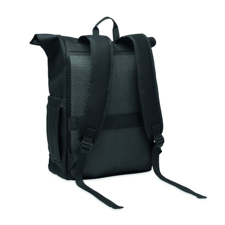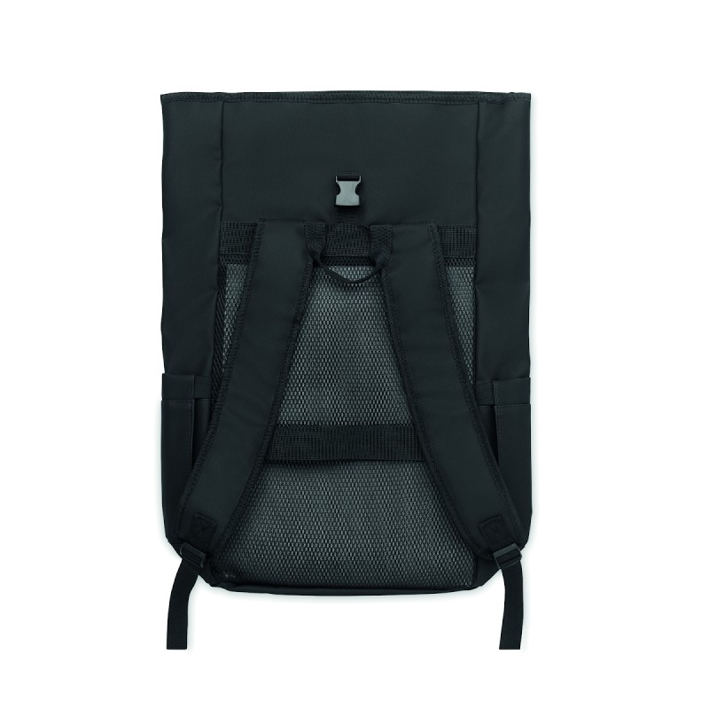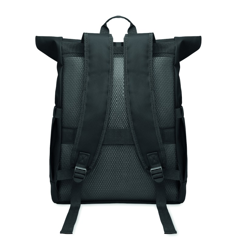 Sac à dos pour ordinateur portable en polyester 600D RPET et PU et doublure en polyester RPET. Dos renforcé en maille avec poche zippée et sangle pour trolley. Bandoulière renforcée avec finition intérieure en maille.