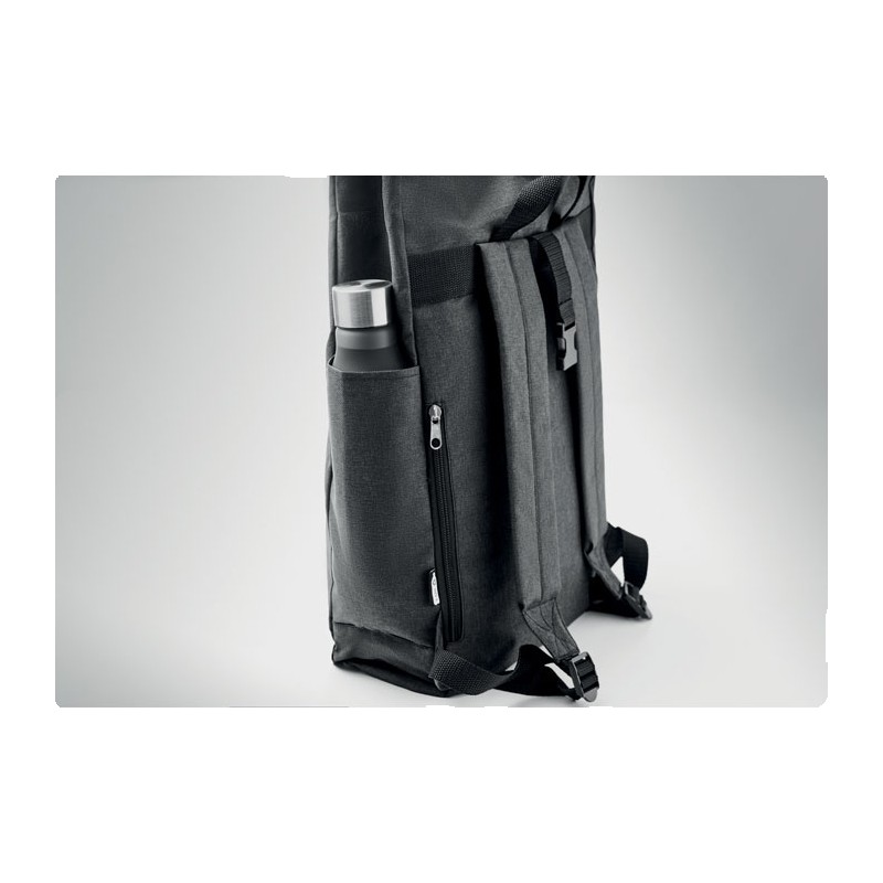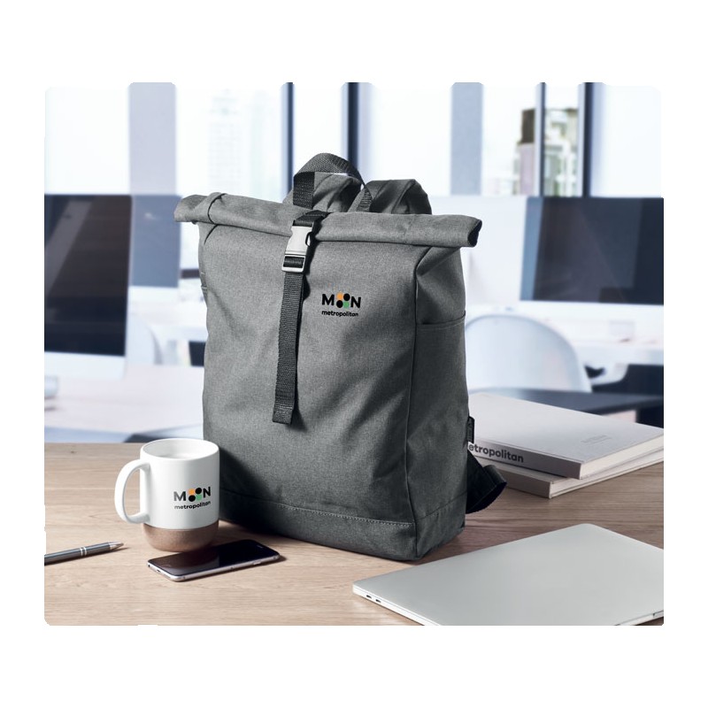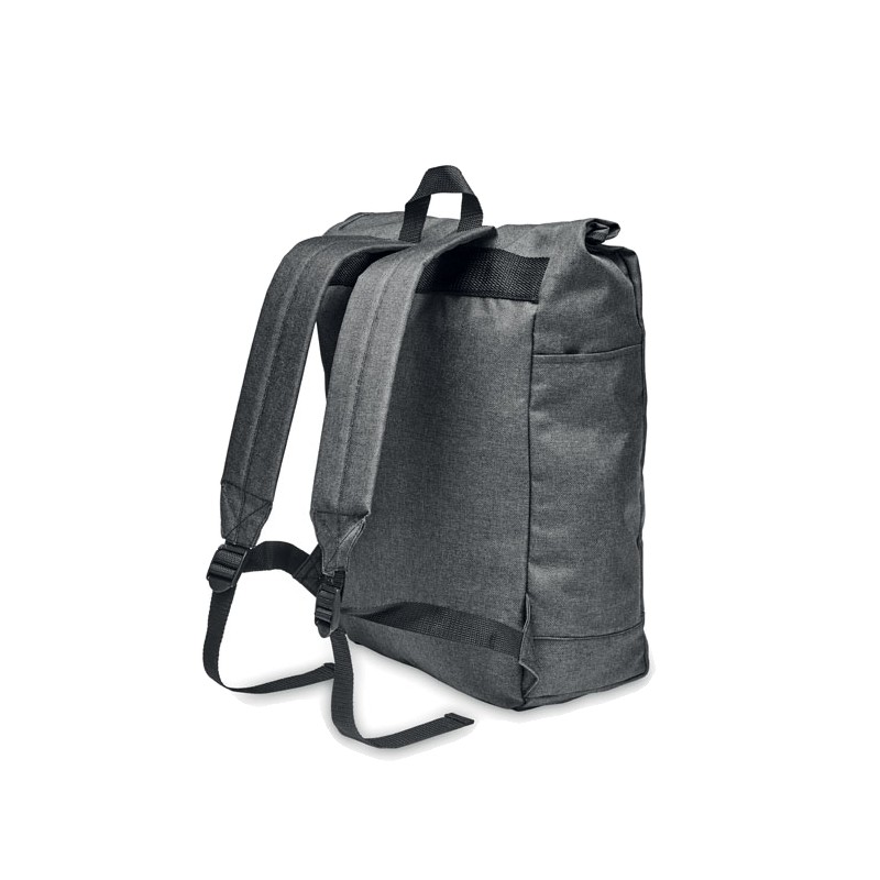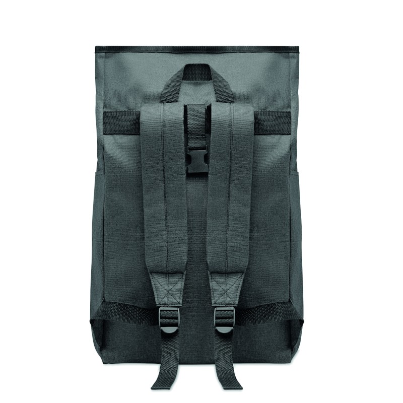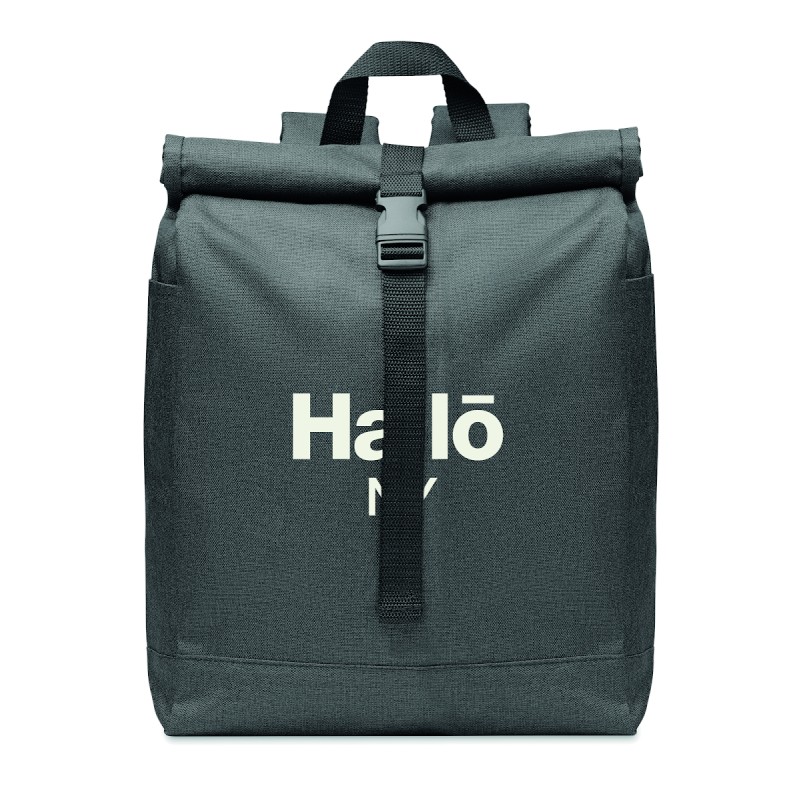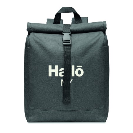 Sac à dos en polyester 600D RPET 2 tons avec fermeture à enroulement.