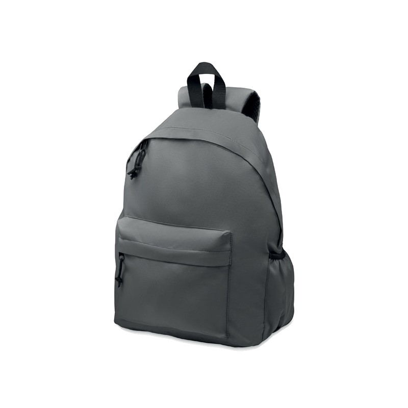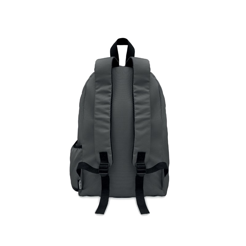 Sac à dos en polyester 600D RPET avec poche extérieure à fermeture éclair. Dos rembourré et compartiment latéral pour bouteille.