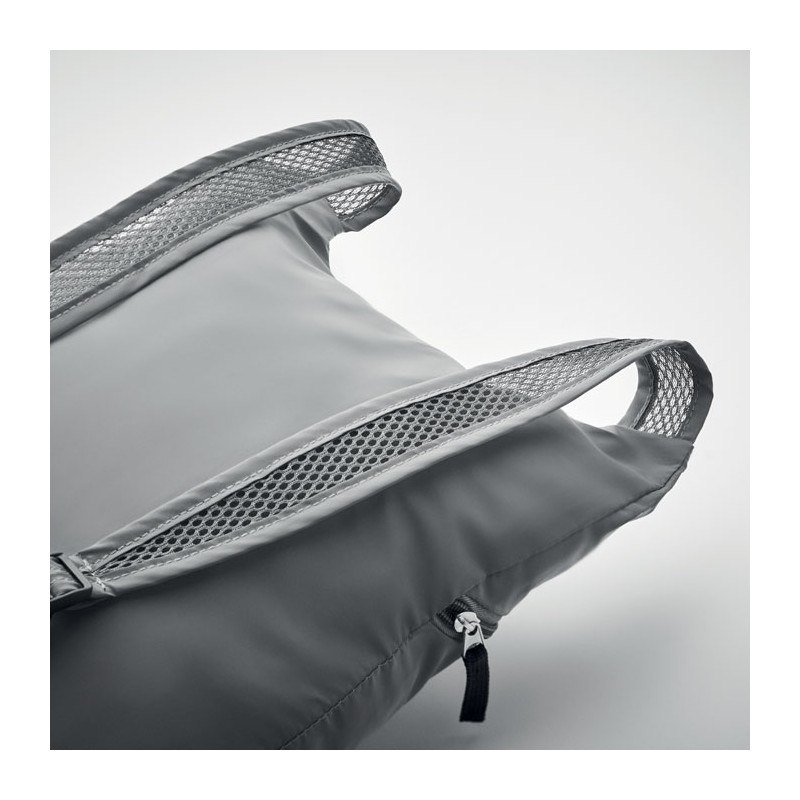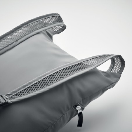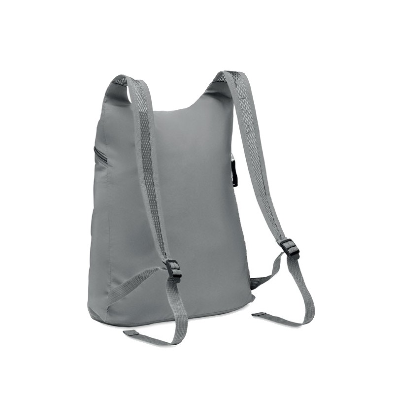 Sac à dos de sport pliable en polyester 190T réfléchissant avec poche frontale zippée. Bretelles réglables.