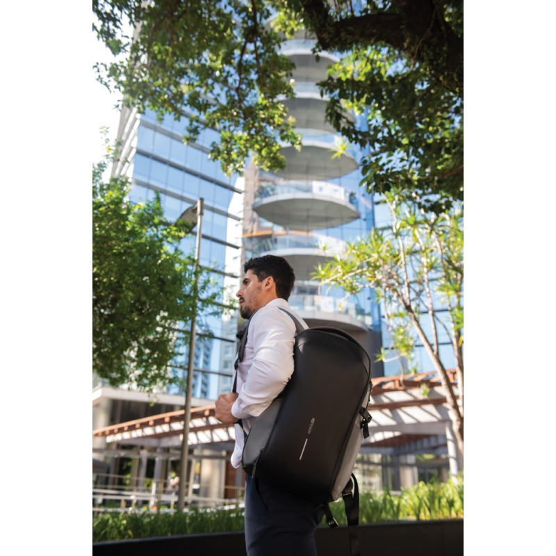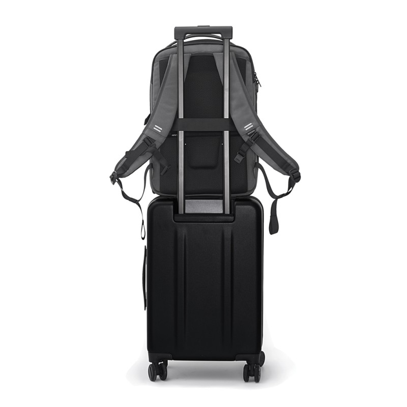 Le sac à dos Bizz est parfait pour le transport quotidien et les voyages légers. Le sac à dos a un compartiment principal à ouverture à 180 degrés avec une section extensible, des poches internes en filet, une pochette intégrée et un porte-clés amovible. La poche arrière est protégée par une fermeture à zip étanche et comporte une housse rembourrée pouvant accueillir un ordinateur portable ou un MacBook jusqu'à 16 pouces. Il y a de nombreuses poches externes faciles d'accès, avec notamment une poche pour bouteille d'eau de grande capacité à fermeture magnétique. Le sac à dos est déperlant et produit avec des matériaux recyclés, avec le traçage AWARE™ qui valide l'utilisation authentique de matériaux recyclés. 27% de contenu recyclé. Modèle déposé®