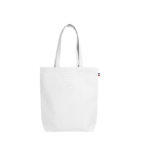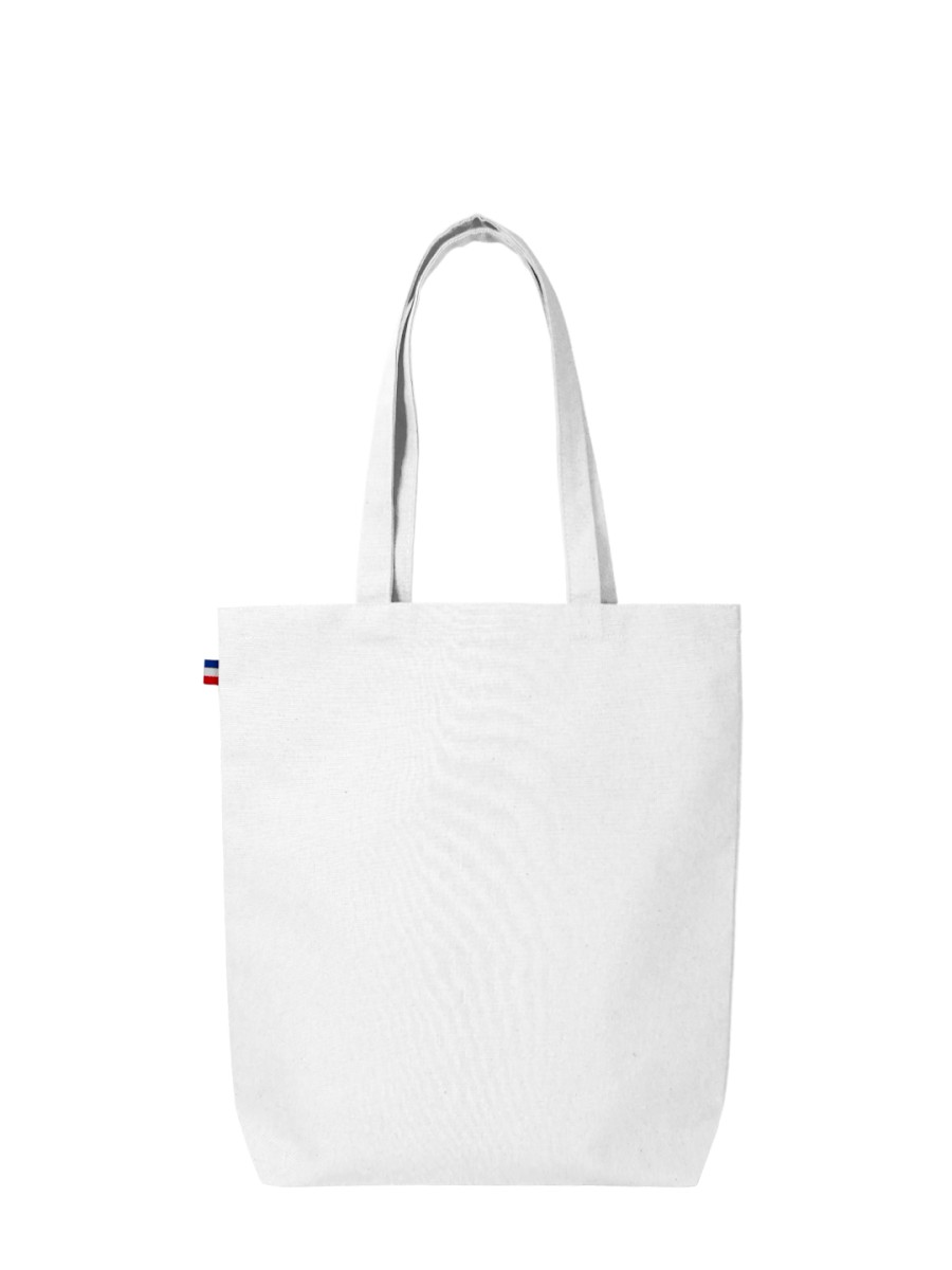 Cabas soufflet fond Jacques, dimensions 38x42x10cm, Confection France (atelier BF ou ESS), en 100% coton - tissé France, avec anses de 2,5x60cm. Étiquette intérieure de composition avec logo Bonjour François, galon BBR sur le coté du sac. 100 pièces par carton. Demi-natté 240g/m².