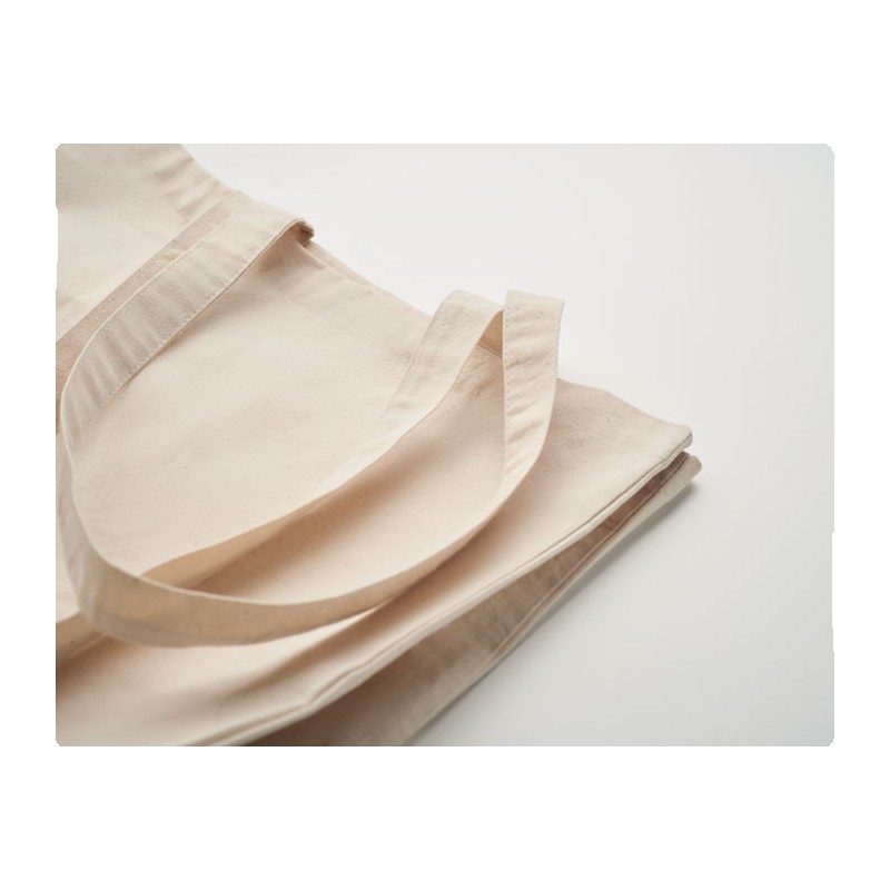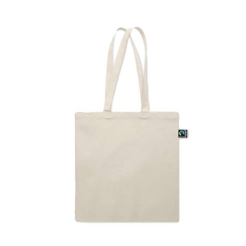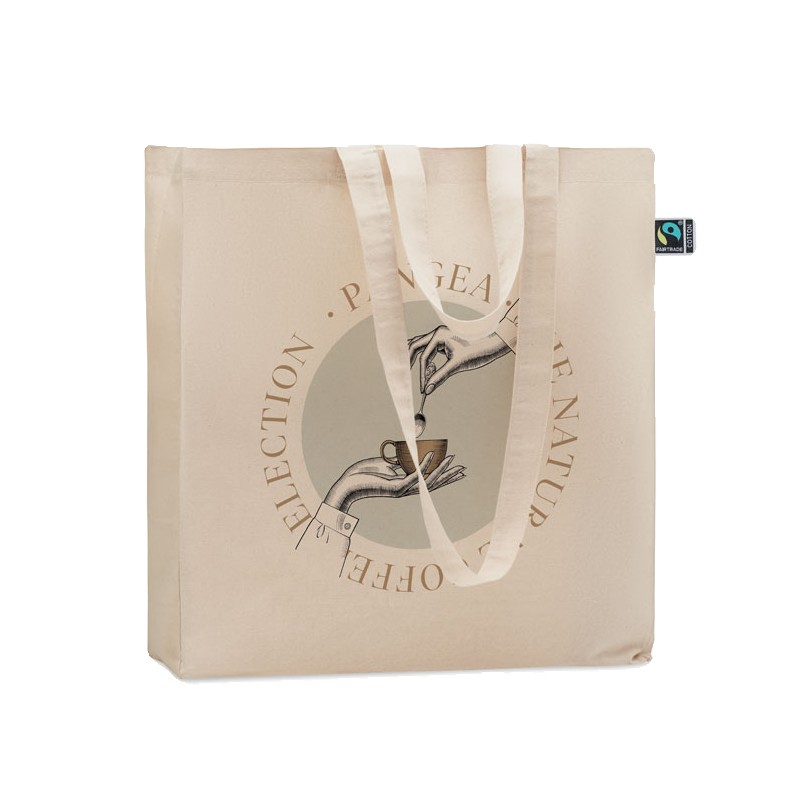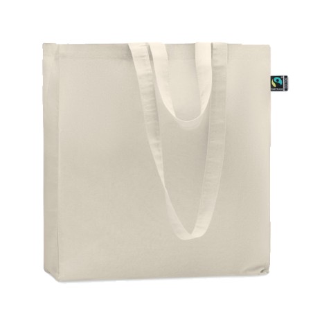 Sac shopping en coton issu de commerce équitable avec longues poignées et soufflets. 180 gr/m². Ce produit est certifié OEKO-TEX®
