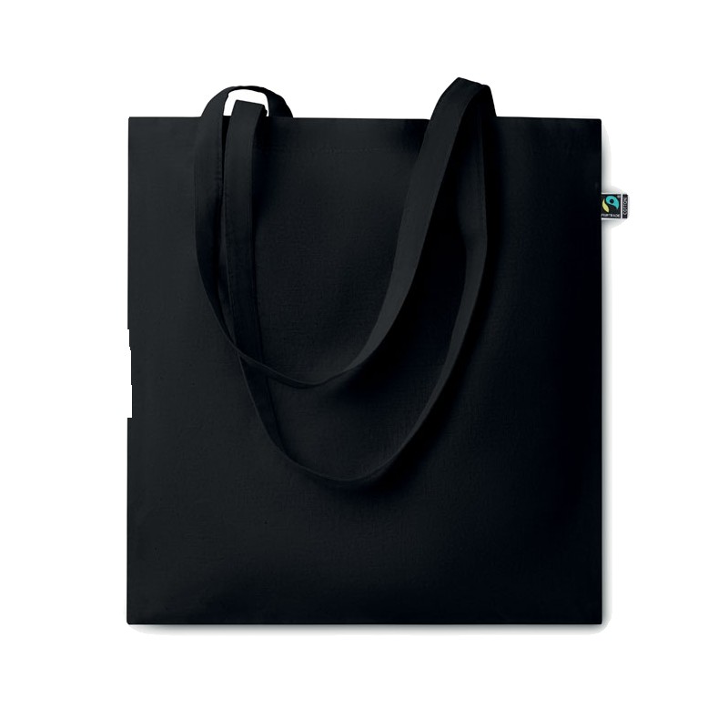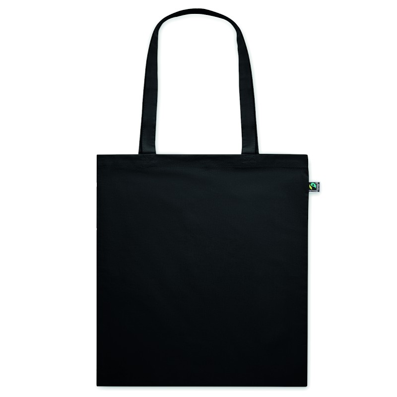 Sac shopping en coton teinté issu du commerce équitable avec longues anses 140gr/m². Ce produit est certifié OEKO-TEX® STANDARD 100.