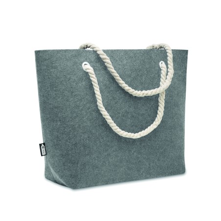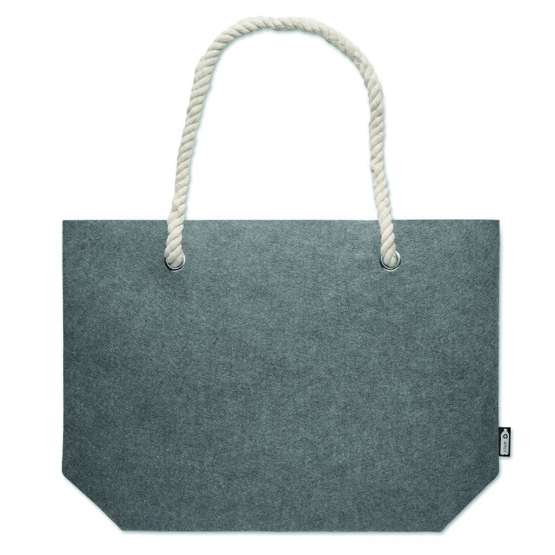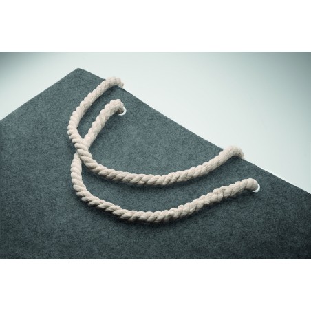 Sac shopping en feutre RPET avec poignée en corde. Epaisseur du feutre : 2 mm.