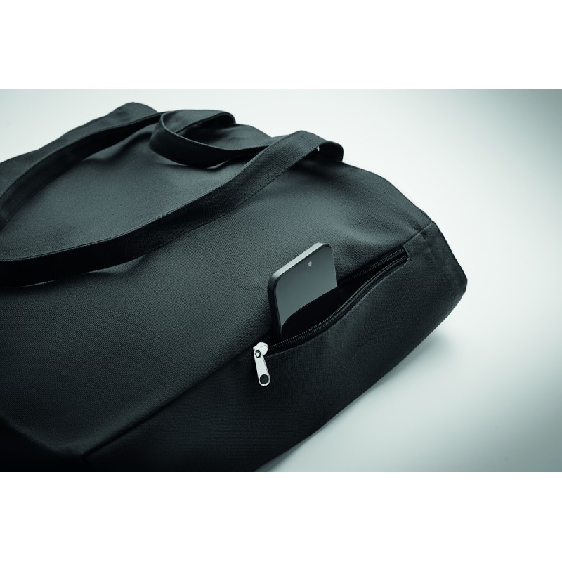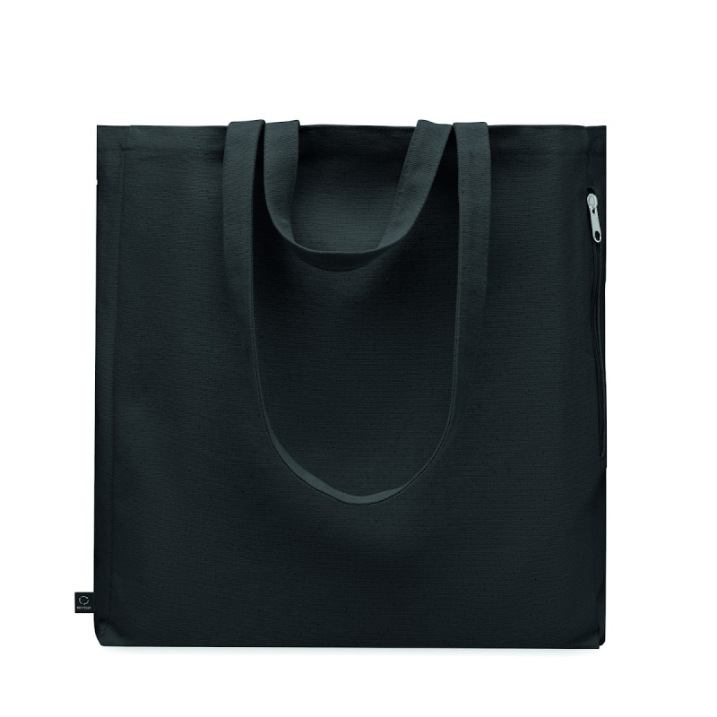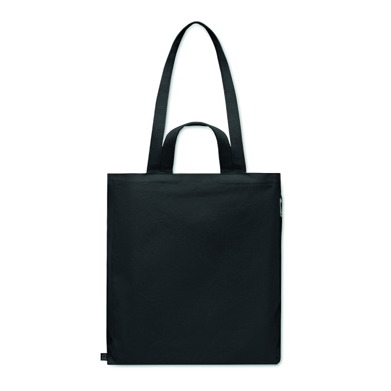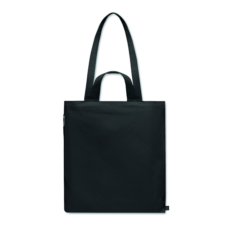 Sac shopping ou de plage en poly coton recyclé (70% coton recyclé, 30% polyester recyclé) avec des poignées courtes. 380 gr/m².
