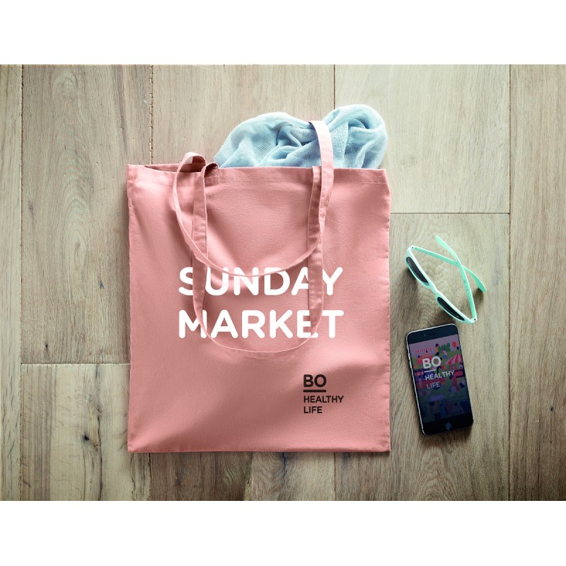 Sac shopping en coton à anses longues . Un tote bag classique conçu pour transporter vos courses quotidiennes ou d'autres articles. Portez le sac dans vos mains ou sur votre épaule grâce aux longues poignées. Fabriqué en coton organique 100% naturel 140 gr/m². Ce produit est certifié OEKO-TEX® STANDARD 100.