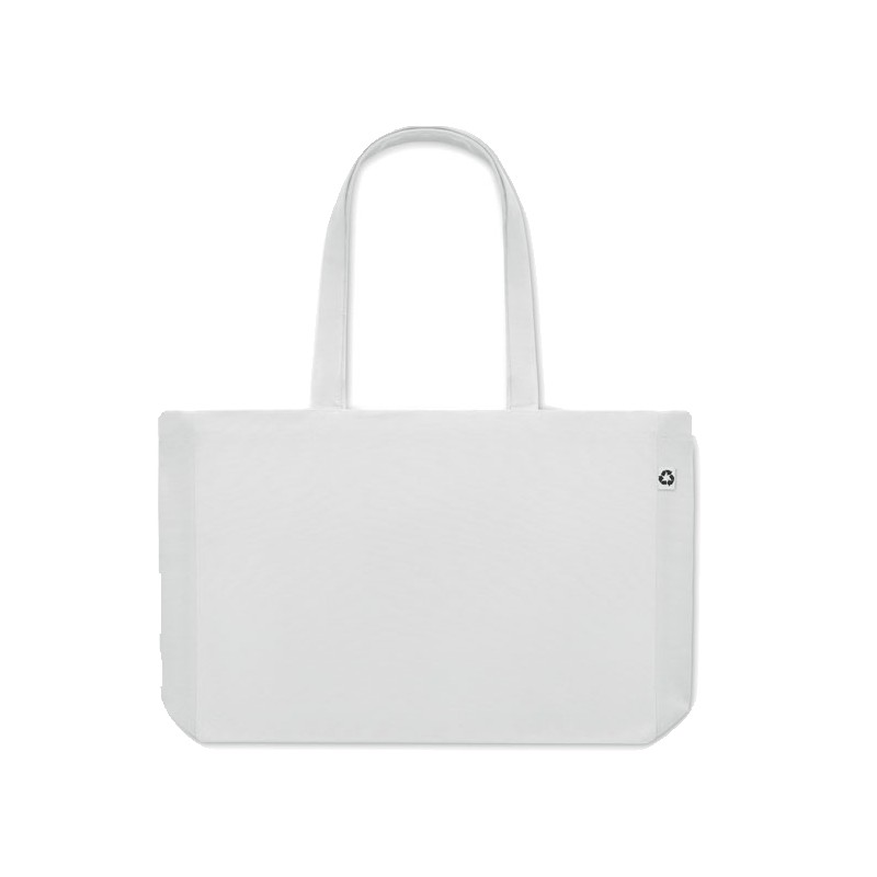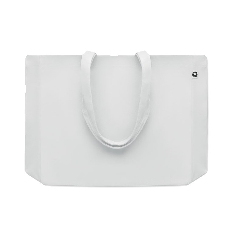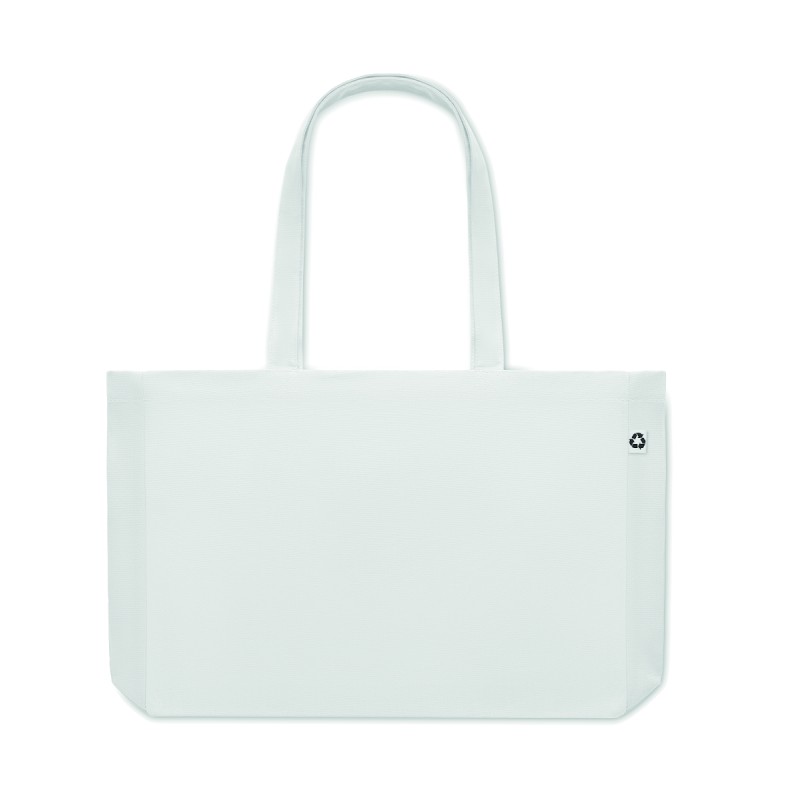 Sac shopping ou sac de plage en toile recyclée avec longues anses et soufflet. 280 gr/m².