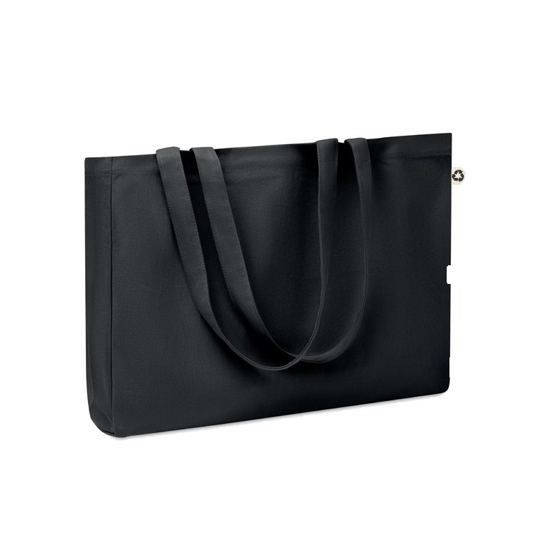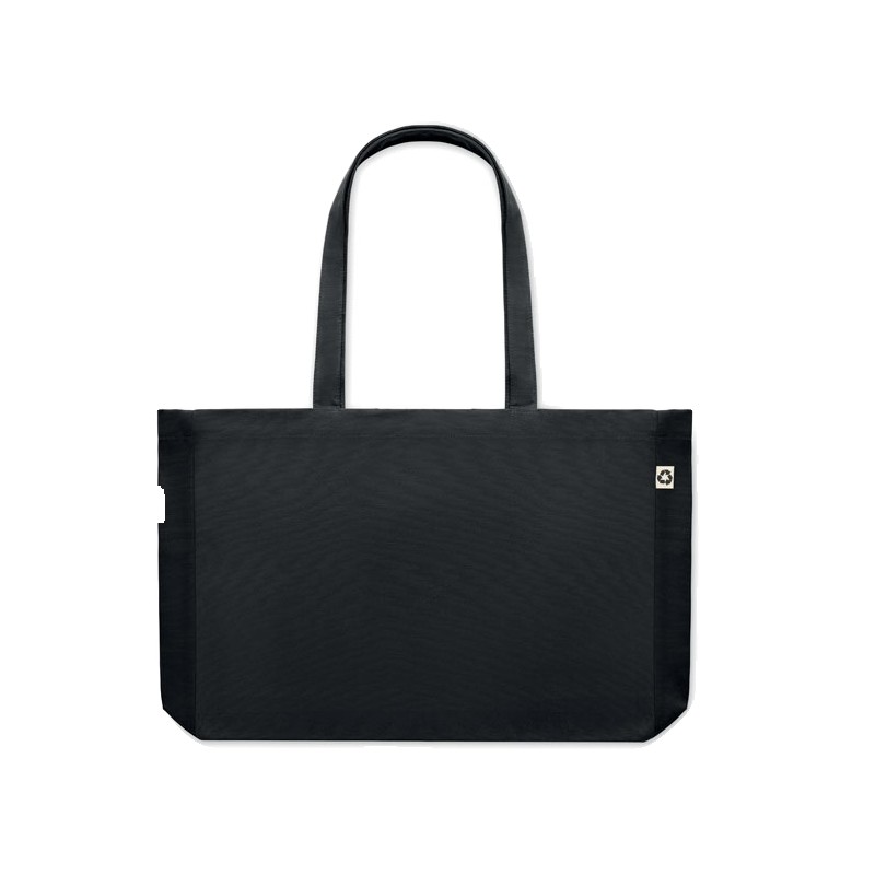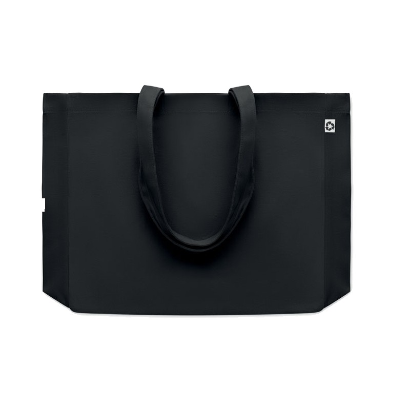Sac shopping ou sac de plage en toile recyclée avec longues anses et soufflet. 280 gr/m².