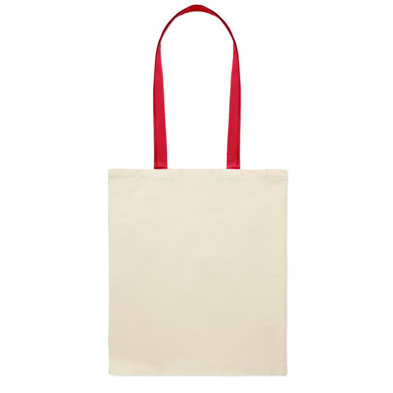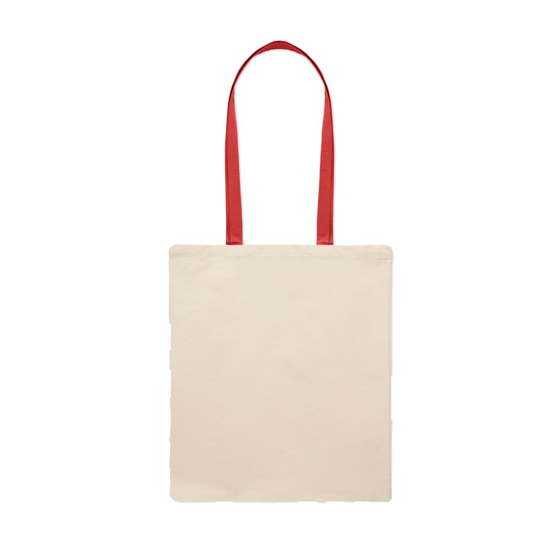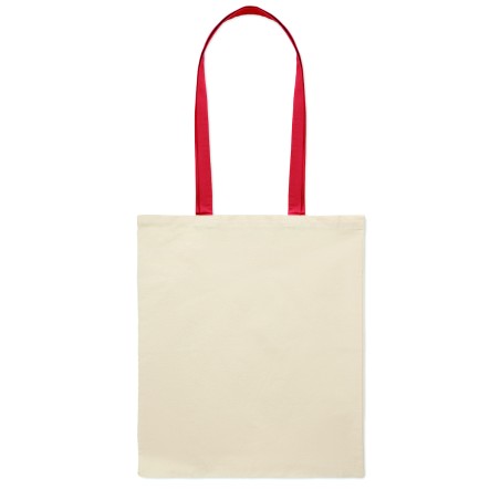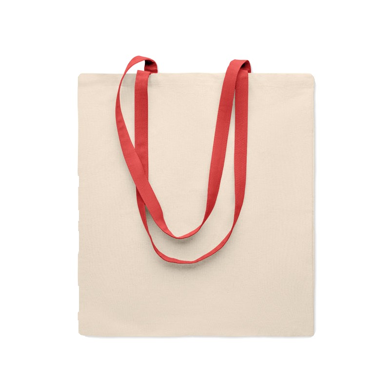 Sac à provisions avec de longues anses colorées en coton. 140 gr/m². Ce cabas est parfait pour les courses quotidiennes ou d'autres activités de shopping. Il est disponible avec des poignées de différentes couleurs. Portez le sac sur votre épaule lorsqu'il est lourd et pour garder les mains libres. Poids maximum supporté : 2,5 kg. Ce produit est certifié OEKO-TEX® STANDARD 100.