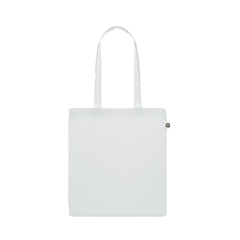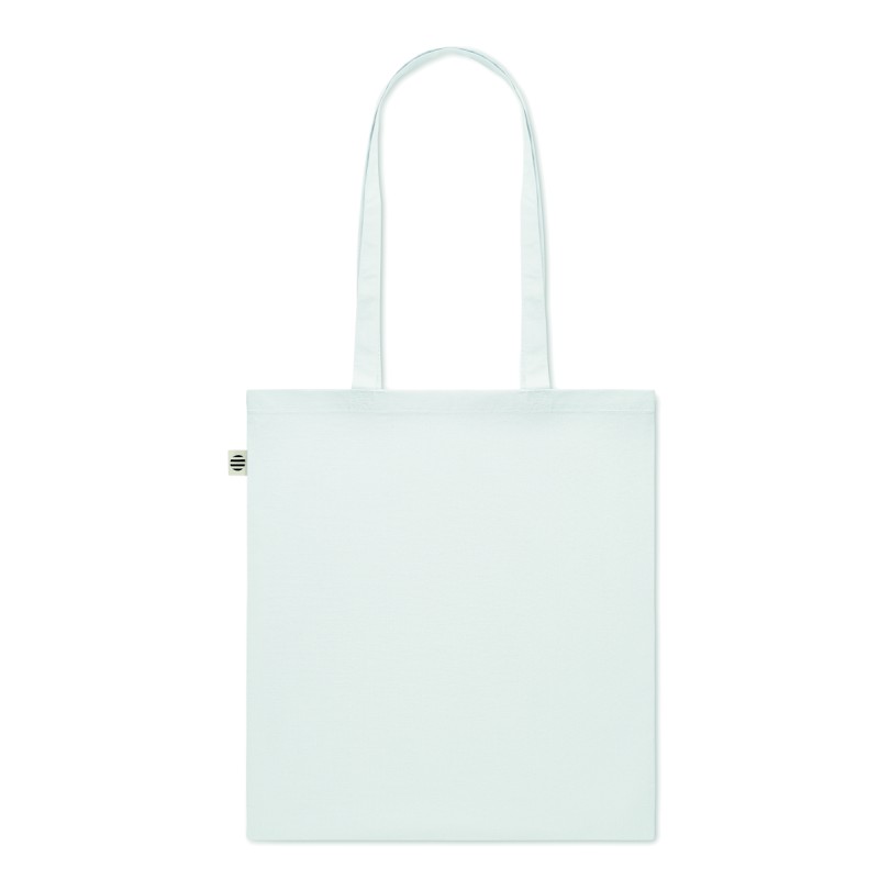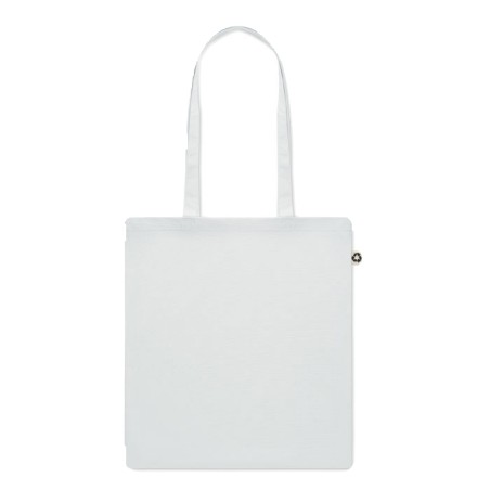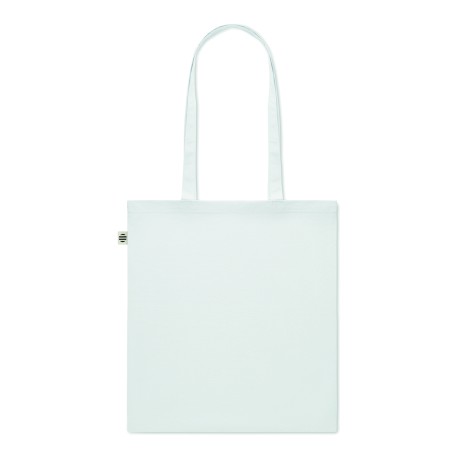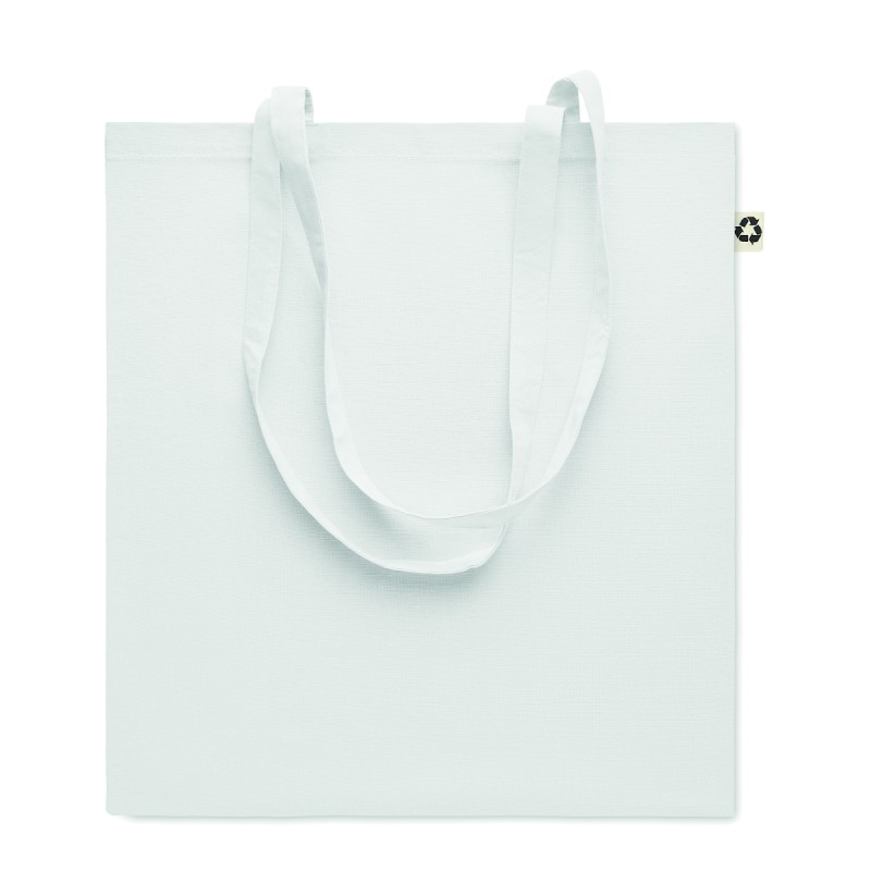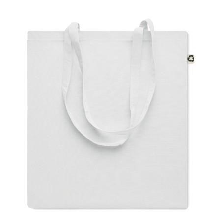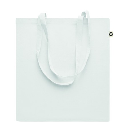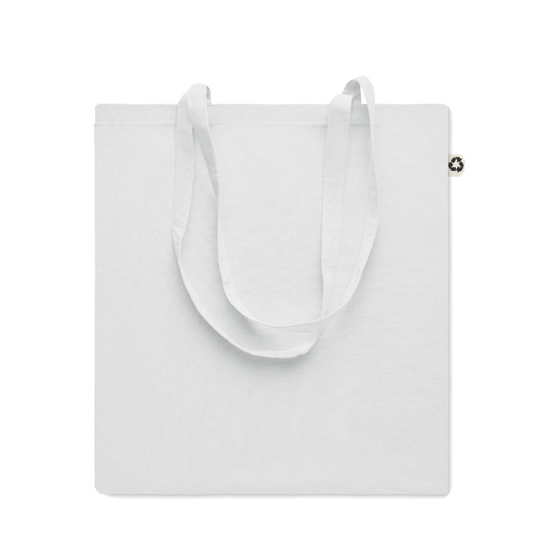 Sac shopping en coton recyclé post-consommation (65% coton recyclé, 35% coton ordinaire) avec de longues anses. 140 gr/m².