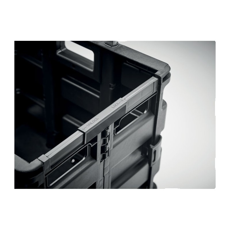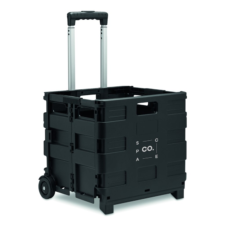 Chariot porte-marchandises pliable en PP avec poignée en acier. Charge maximale : 25 kg.