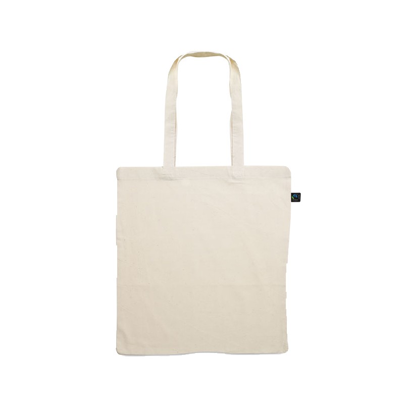 Sac shopping en coton équitable avec de longues poignées. 180 gr/m². Ce produit est certifié OEKO-TEX® STANDARD 100.