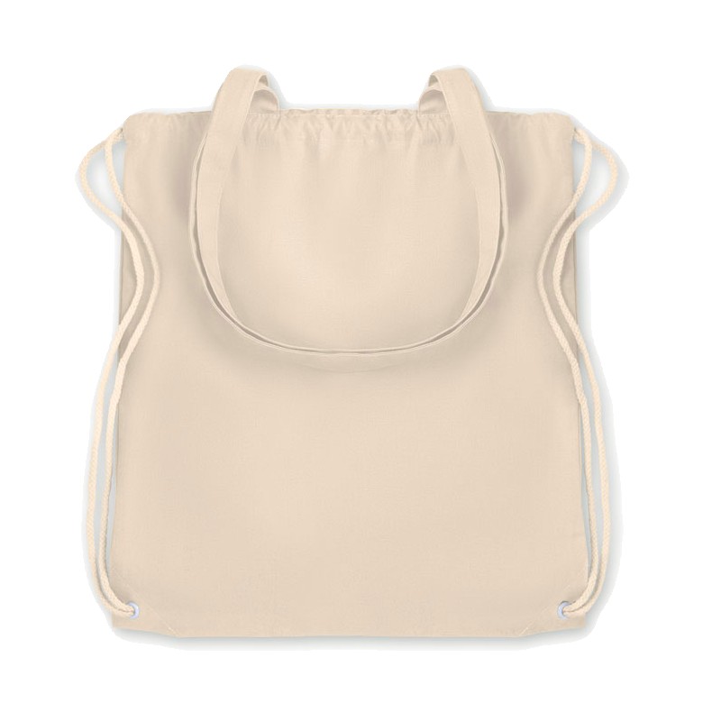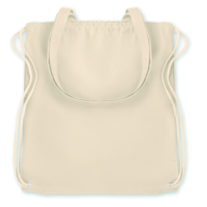 Sac shopping en toile avec anses longues et fermeture avec cordon. 220 g/m².