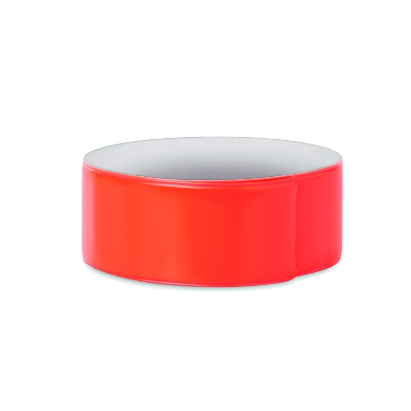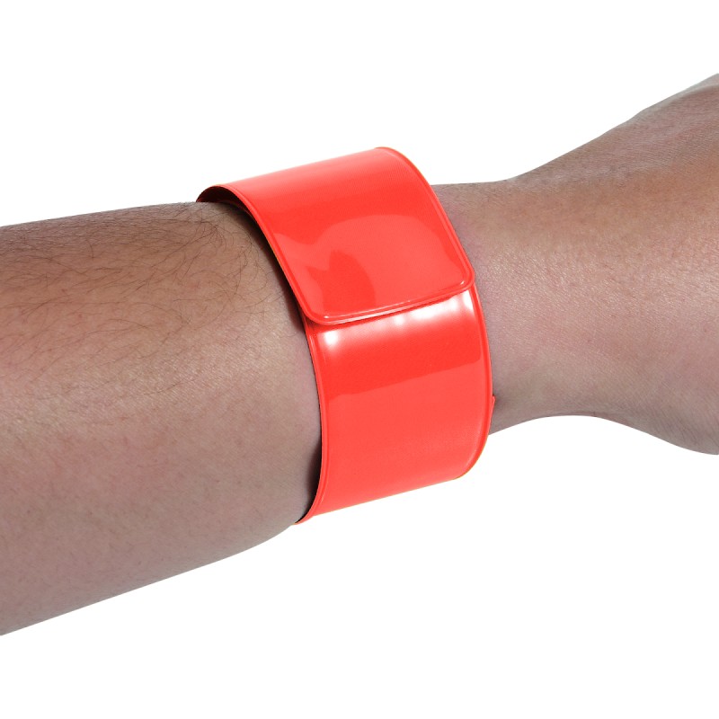 Brassard réfléchissant en PVC vert fluo doublé PVC blanc. Objet uniquement promotionnel. 32x3cm.