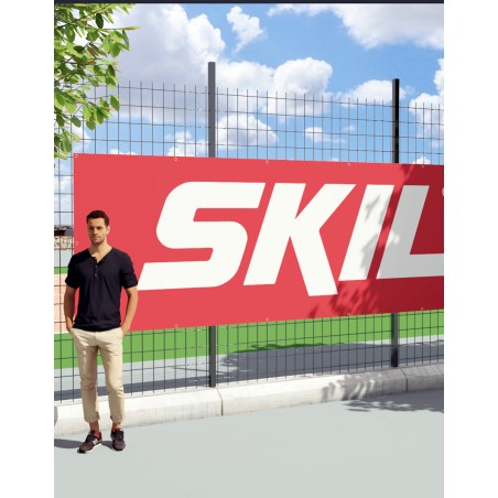 La banderole publicitaire personnalisée en PVC est un must-have pour habiller des structures rigides existantes. La matière utilisée est un PVC 420g/m² traité anti-feu norme européenne B1. La bâche PVC est opaque et l'impression Haute Définition est réalisée en numérique dans notre atelier français permettant une personnalisation totale sur la surface de la bâche. L'impression est faite sur le recto et n'est pas visible au verso. Attention,si grande prise au vent, préférez la banderole Knitt, plus légère et micro-perforée. Ces bâches peuvent servir de kakemono avec un fourreau en haut et en bas, mais sont aussi conçues pour être sanglées à une barrière, une rambarde ou tout autre support fixe qui sera lié à la banderole avec des œillets, des sandows. 8 dimensions standard disponibles. Attention : ces barrières ne peuvent être pliées. Elles sont conditionnées en rouleau. Dimensions sur mesure possibles : nous contacter !