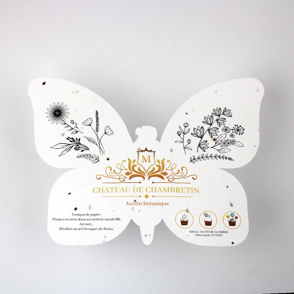 Papier à semer A5 (210x148mm) épaisseur 200g contenant des graines de fleurs. À planter directement en terre pour permettre aux semences de pousser ! Elle est découpée à la forme de votre choix.