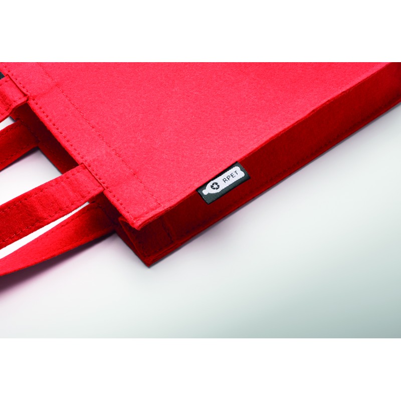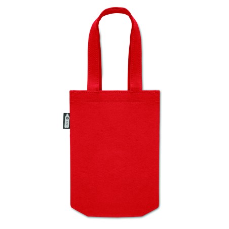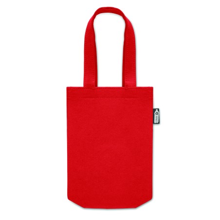 Petit sac cadeau en feutre RPET avec anses courtes et soufflets de fond. Epaisseur du feutre : 1 mm.