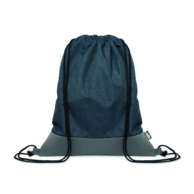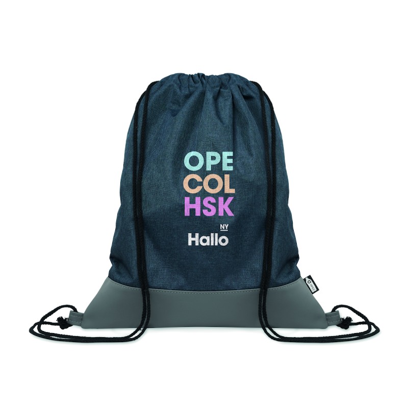 Sac à cordon en polyester 300D RPET bicolore avec détails en PU souple et cordon en polycoton.