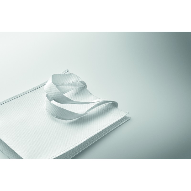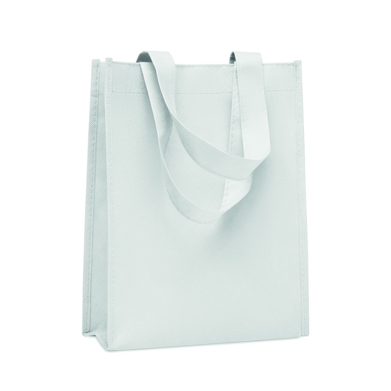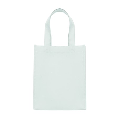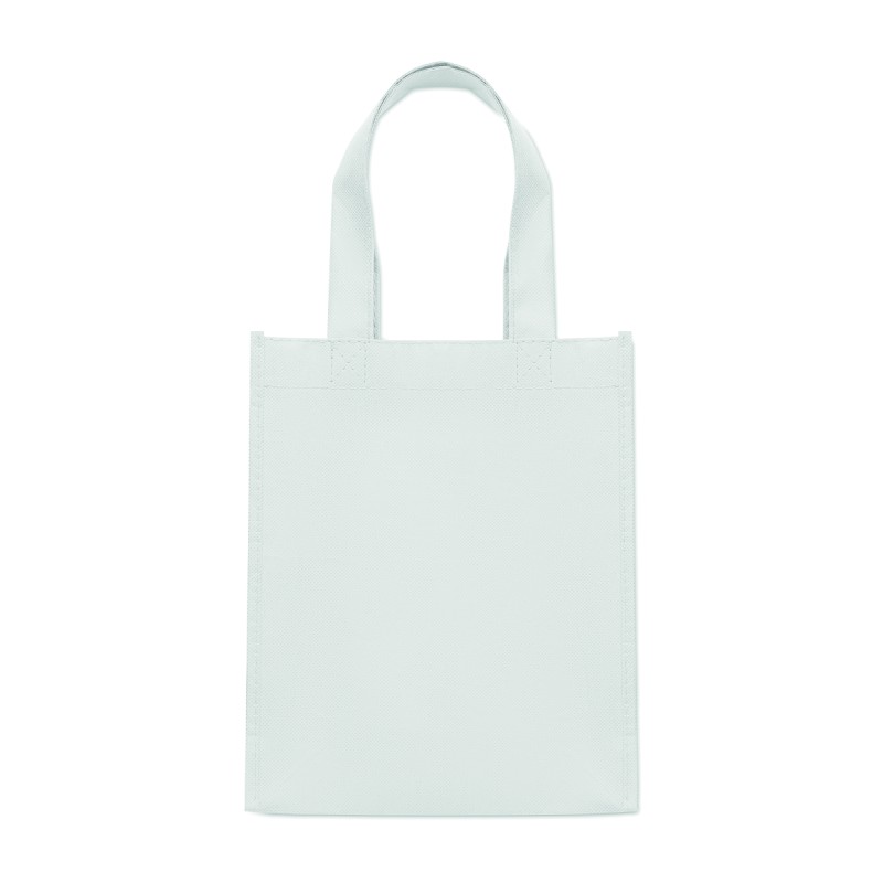 Petit sac cadeau en RPET non-tissé avec poignées courtes et soufflets. 80 gr/m².
