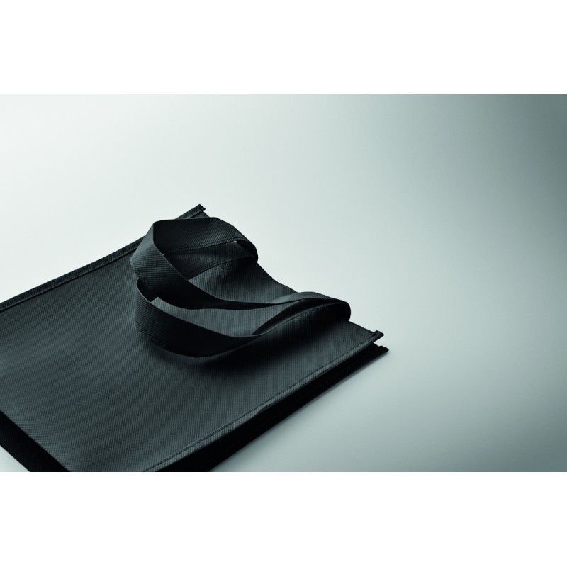 Petit sac cadeau en RPET non-tissé avec poignées courtes et soufflets. 80 gr/m².