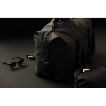 Vous ne passerez pas inaperçu avec ce sac de week-end spacieux sur l'épaule, car il est à la fois élégant et minimaliste. Le sac est doté d'une sangle réglable qui vous permet de voyager confortablement, que vous soyez en voyage d'affaires ou en vacances. Pour une meilleure organisation, le sac est équipé d'une poche zippée d'un côté et d'une petite poche avec bouton-poussoir de l'autre. Fabriqué en PU, ce qui lui confère des propriétés hydrofuges.
