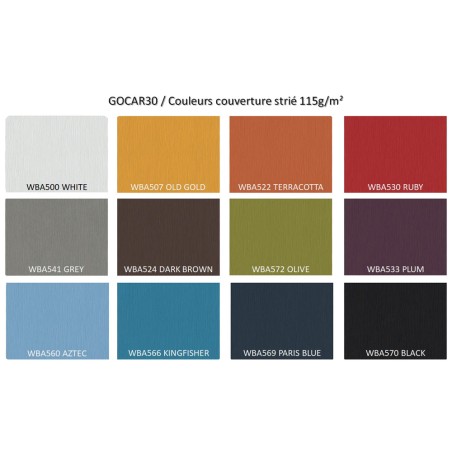 Couverture rigide en papier strié 115g/m² rembordé sur carton 1,55mm; coloris standard