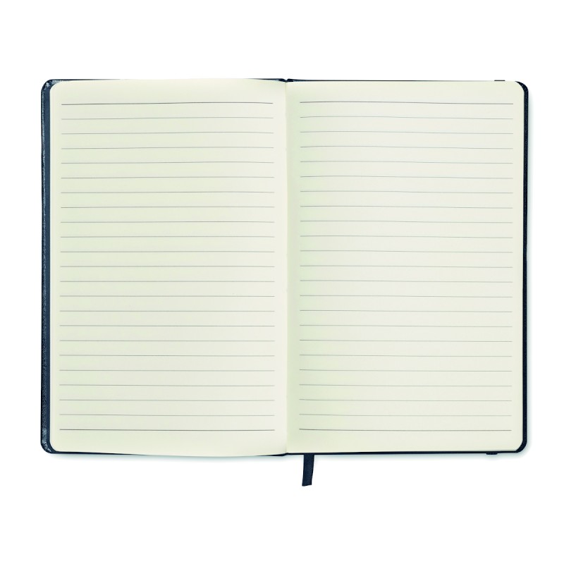 Carnet A5 avec couverture rigide en PU. Reliure dos collé. 192 pages lignées en papier recyclé (96 feuilles). Fermeture élastique assortie et ruban marque-page. FSC®-certified | FSC MIX CREDIT, P7.1, FSC-C213206