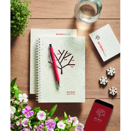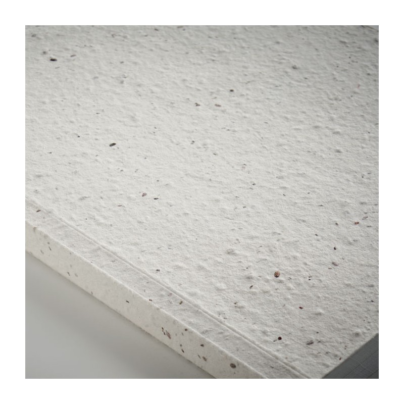 Carnet A5 à couverture à reliure en papier semence. 200 pages lignées recyclées (100 feuilles).