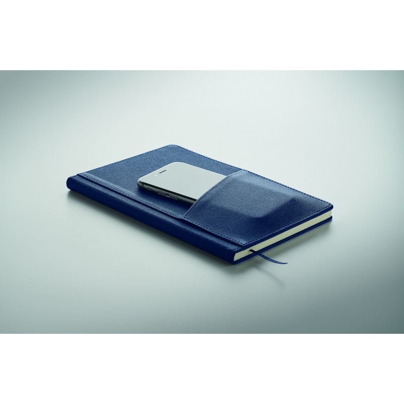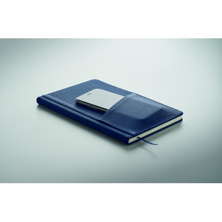Carnet A5 avec couverture rigide en PU, poche frontale pour téléphone et boucle pour stylo. Relié par un étui. 160 pages lignées en papier recyclé (80 feuilles). Marque-page en ruban assorti. FSC®-certified | FSC MIX CREDIT, P7.1, FSC-C213206
