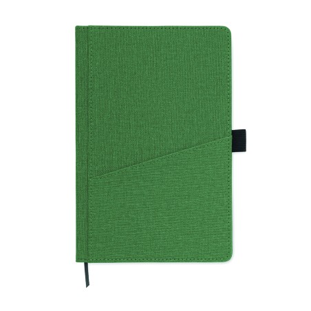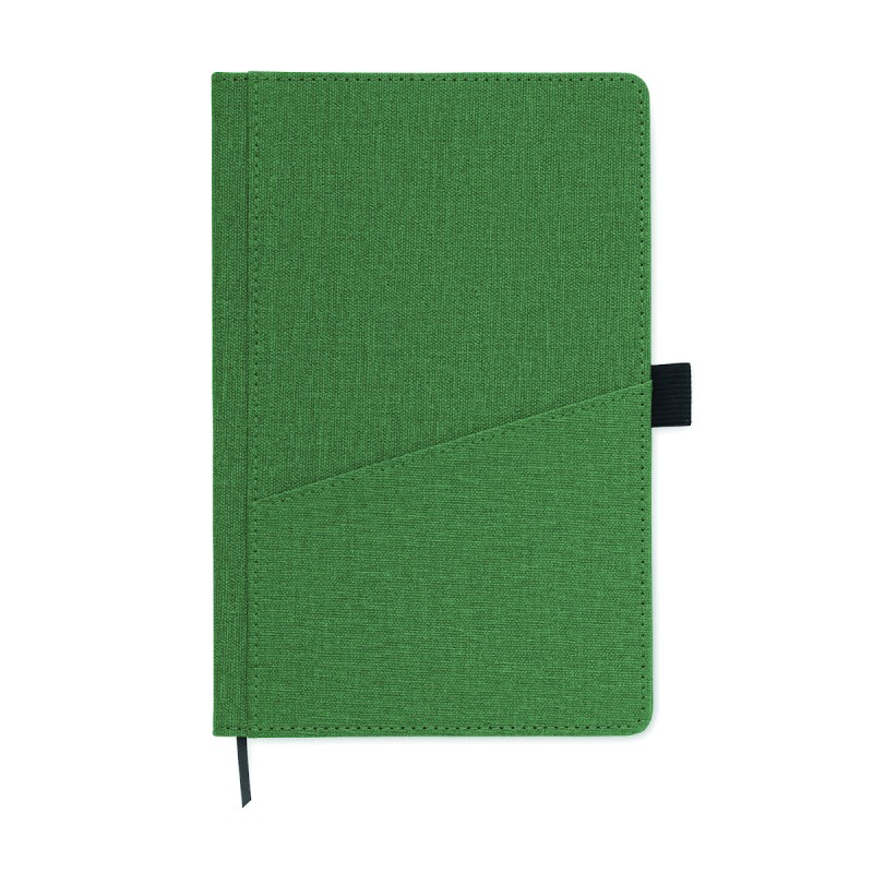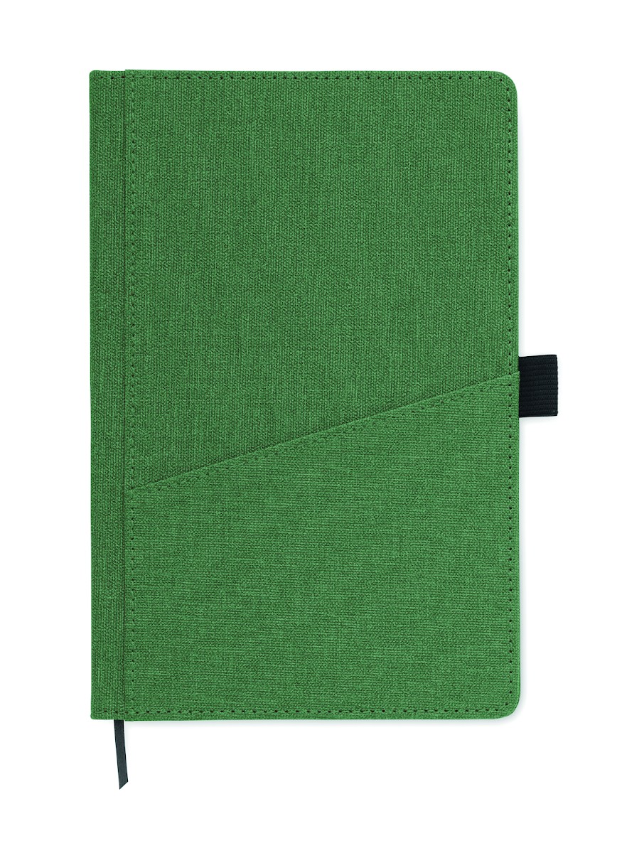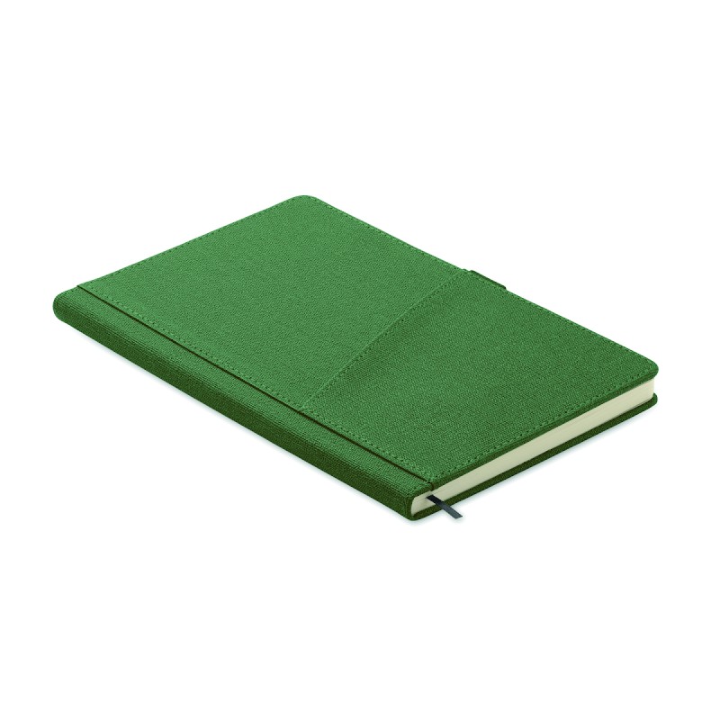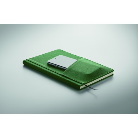 Carnet A5 avec couverture rigide en PU, poche frontale pour téléphone et boucle pour stylo. Relié par un étui. 160 pages lignées en papier recyclé (80 feuilles). Marque-page en ruban assorti. FSC®-certified | FSC MIX CREDIT, P7.1, FSC-C213206