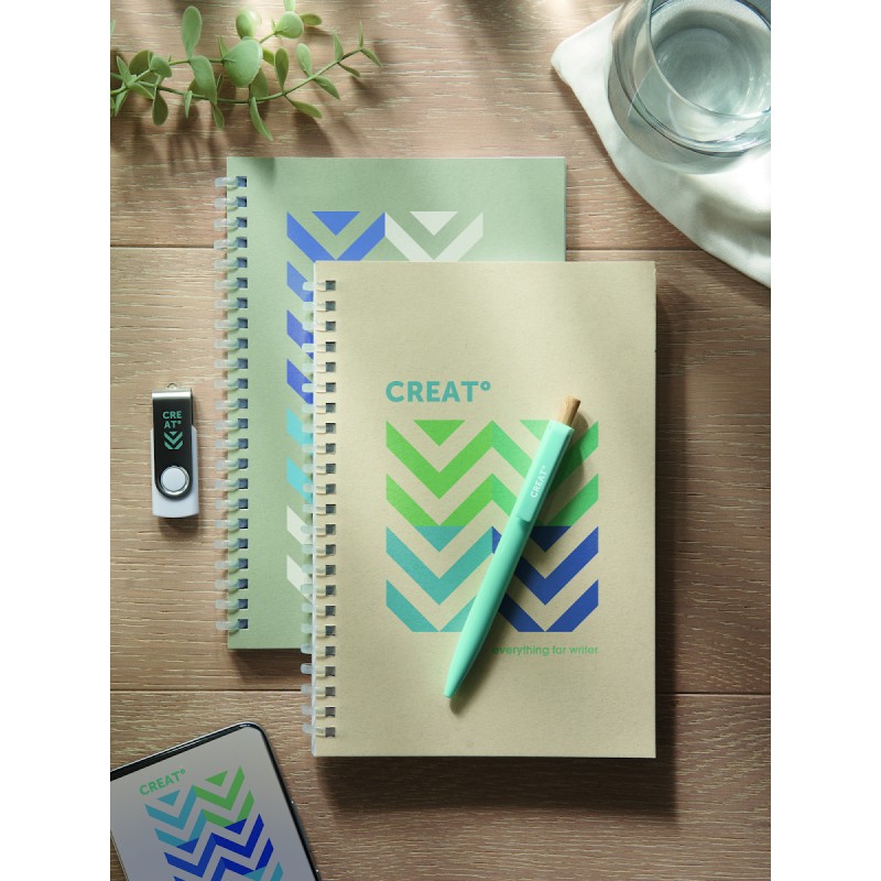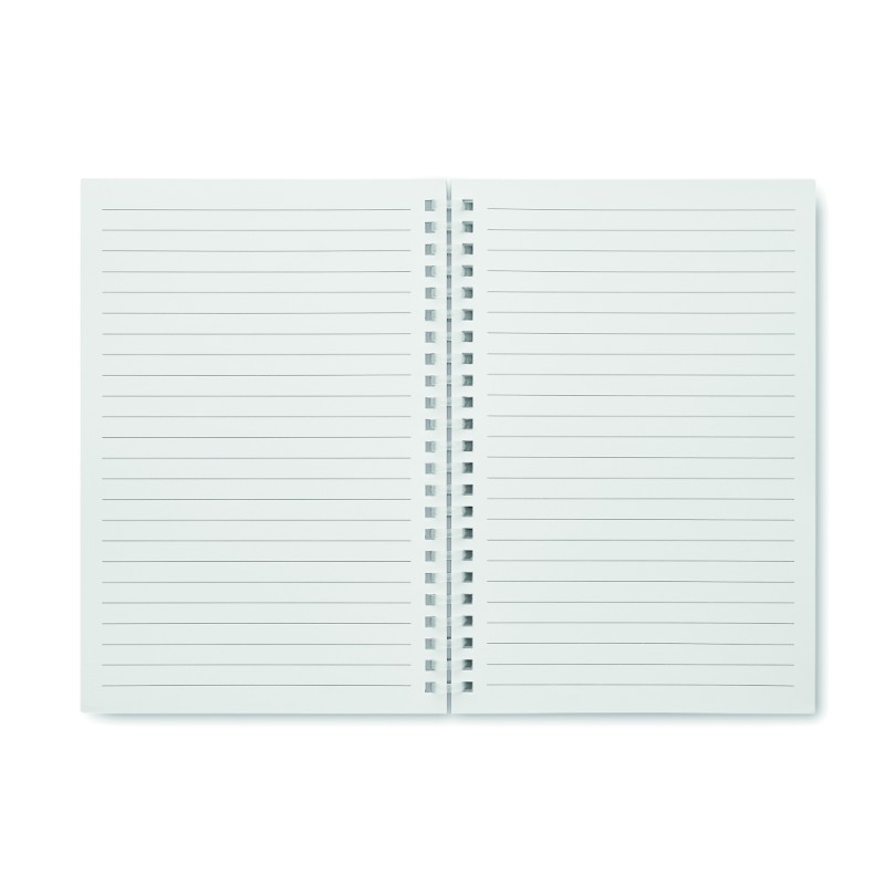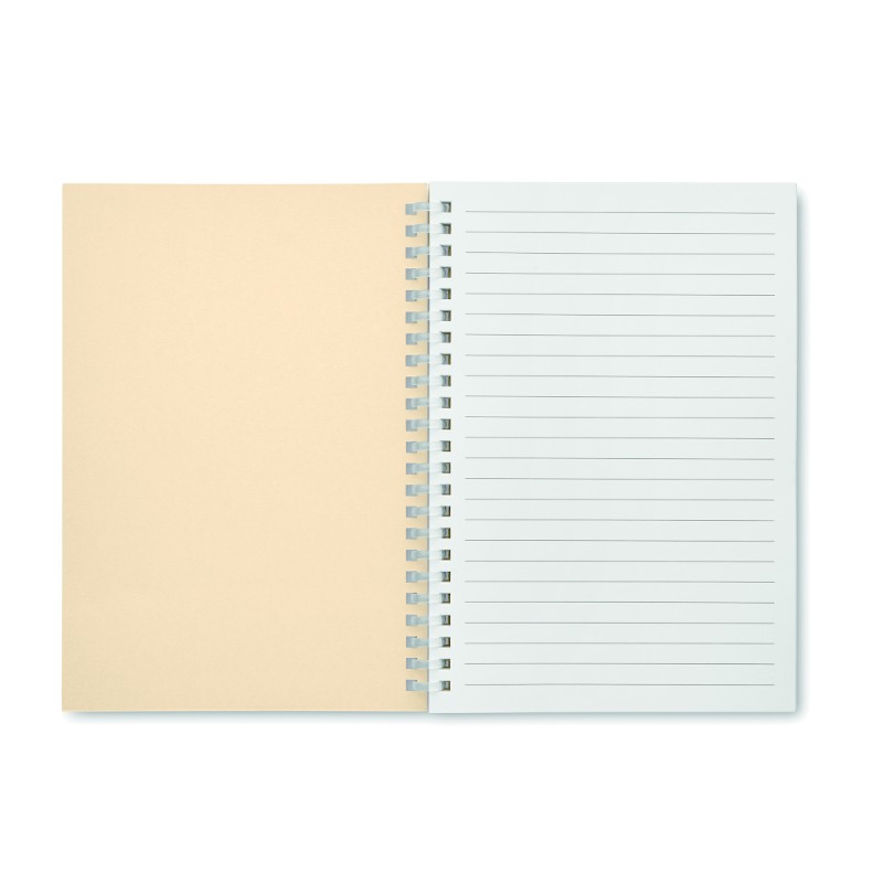 Carnet A5 à couverture en carton recyclé et reliure à spirale. 160 pages de papier ligné recyclé (80 feuilles). FSC®-certified | FSC MIX CREDIT, P7.1, FSC-C213206
