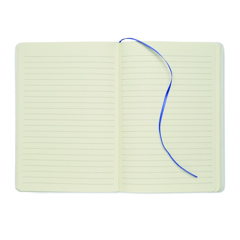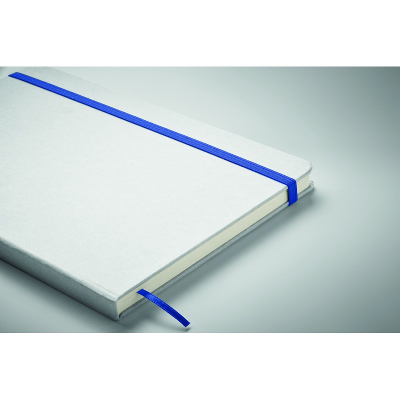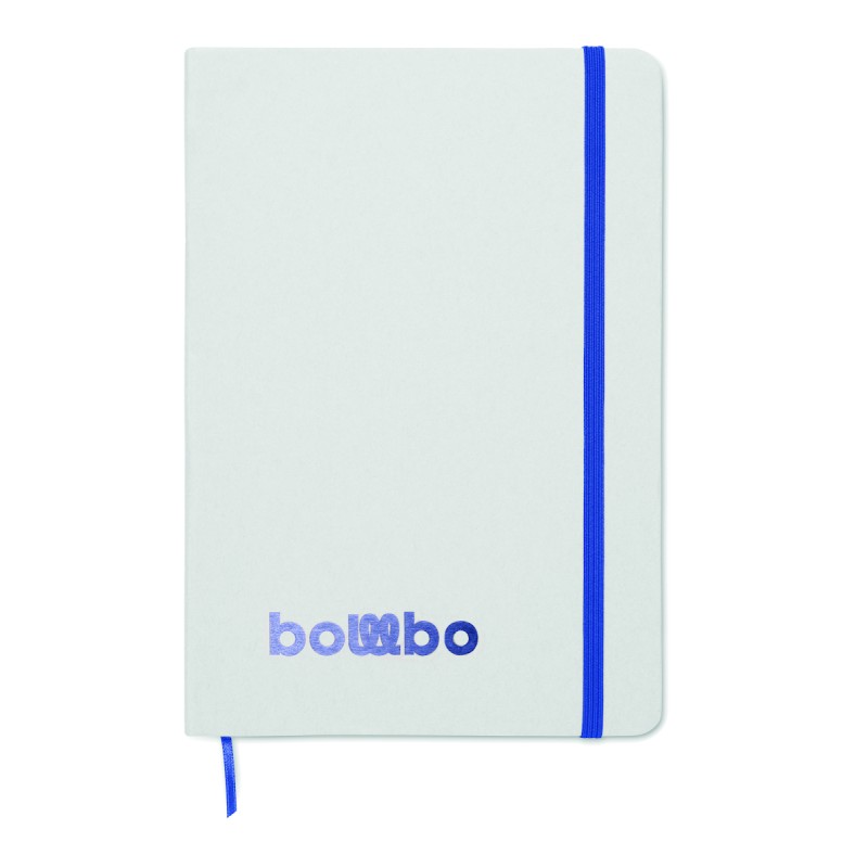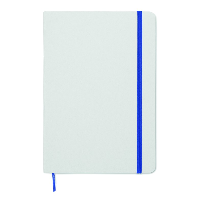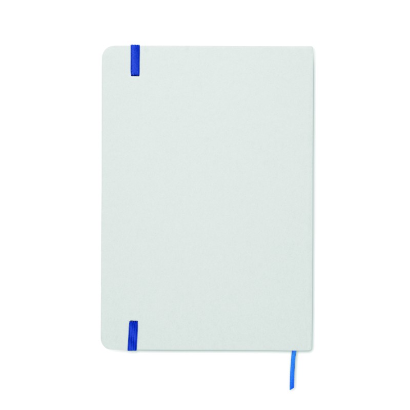 Carnet A5 à couverture rigide composé de 70% de briques de lait recyclées et de 30% de papier recyclé. Couverture blanche. 160 pages lignées en papier recyclé (80 feuilles). Fermeture élastique, marque-page assorti à la couleur du carnet. La couleur est révélée après la gravure au laser.