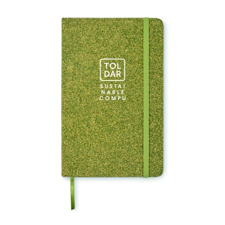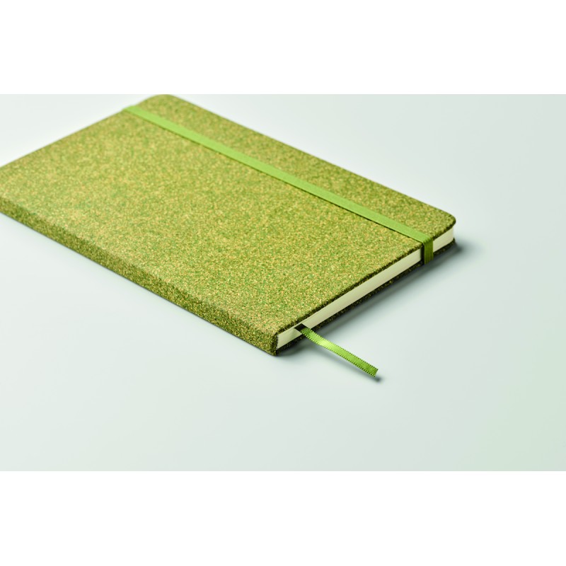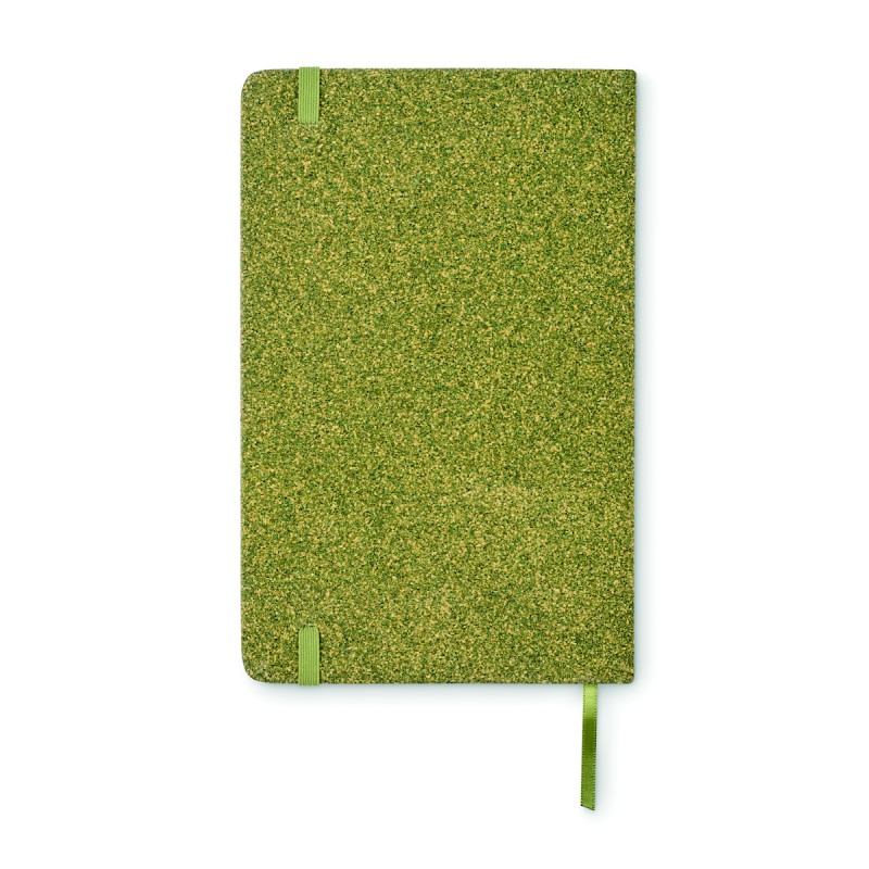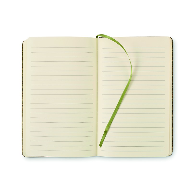 Carnet A5 avec couverture rigide composée de 20% de marc de thé, 30% de liège et 50% de tissu polycoton. 160 pages lignées en papier recyclé (80 feuilles/70gsm). Elastique et ruban marque pages assortis. FSC®-certified | FSC MIX CREDIT, N7.1, FSC-C213206