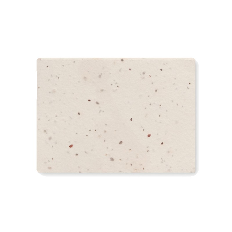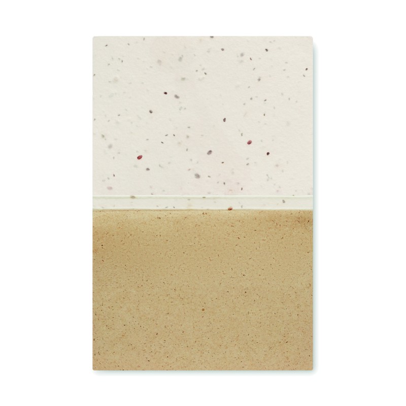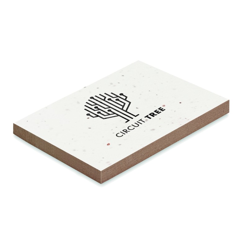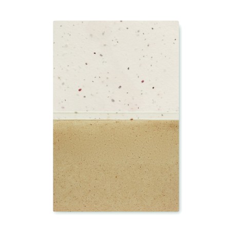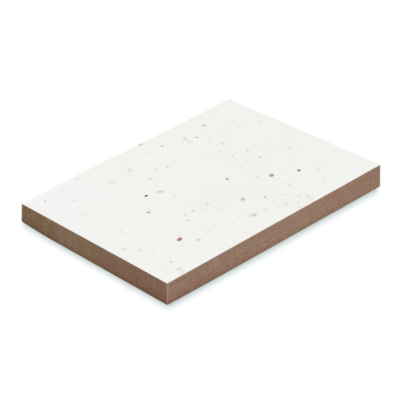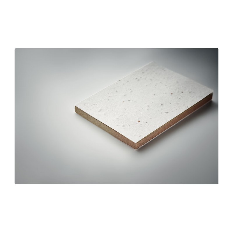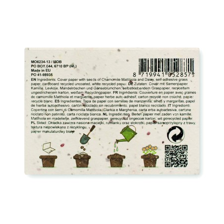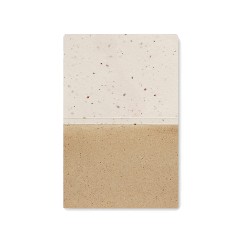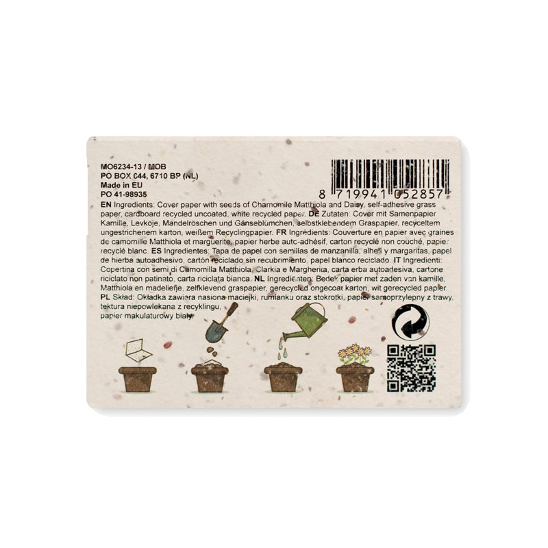 Bloc-notes de 50 feuilles de papier à base d'herbe repositionnables à couverture souple en Papier de culture. Comme les traditionnels blocs- notes jaunes, vous pouvez écrire vos notes sur le papier et les coller pour ne pas les oublier. Lorsque vous avez utilisé les 50 feuilles de papier, vous pouvez planter la couverture dans la terre. Une sélection de graines de fleurs sauvages de prairie poussera et donnera à cet article une seconde vie. Un bureau vraiment vert et durable est essentiel. Fabriqué en UE.