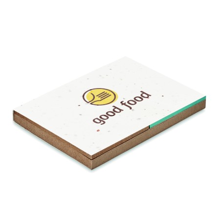 Bloc-notes de 50 et 25 notes de papier à base d'herbe repositionnables et 3 blocs de marqueurs à couverture souple en Papier de culture. Comme les traditionnels blocs-notes jaunes, vous pouvez écrire vos notes sur le papier et les coller pour ne pas les oublier. Lorsque vous avez utilisé les feuilles de papier, vous pouvez planter la couverture dans la terre. Une sélection de graines de fleurs sauvages de prairie poussera et donnera à cet article une seconde vie. Un bureau vraiment vert et durable est essentiel.