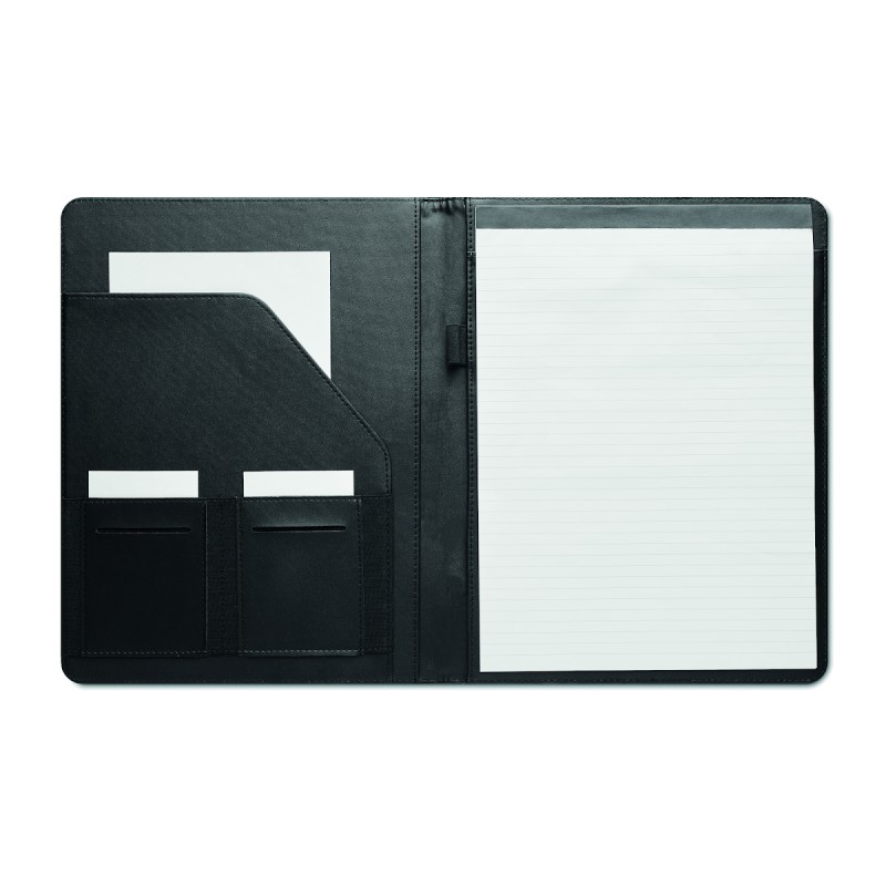 Conférencier A4 en RPET 300D bicolore. Contient des compartiments intérieurs et un porte-stylo. Comprend un bloc-notes de 20 feuilles lignées. Le bambou est un produit naturel, et présente de légères variations de couleur, de décoration et de tailles.