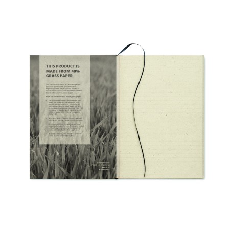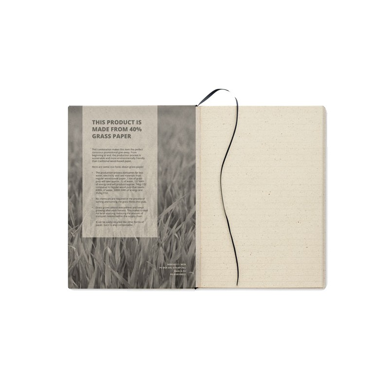 Carent A5 avec 80 feuilles de papier d'herbe lignées et couverture en carton. Idéal pour toutes vos notes pendant les réunions de bureau ou à l'école. Le papier d'herbe est un cadeau promotionnel conscient parfait. Du début à la fin, le processus de production est durable et plus respectueux de l'environnement que le papier traditionnel à base de bois. Fabriqué dans l'UE.