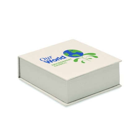 Bloc-notes en carton de lait recyclé de 200 feuilles. Fabriqué à 70 % de carton de lait recyclé et à de 30 % de papier recyclé.