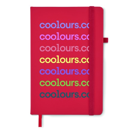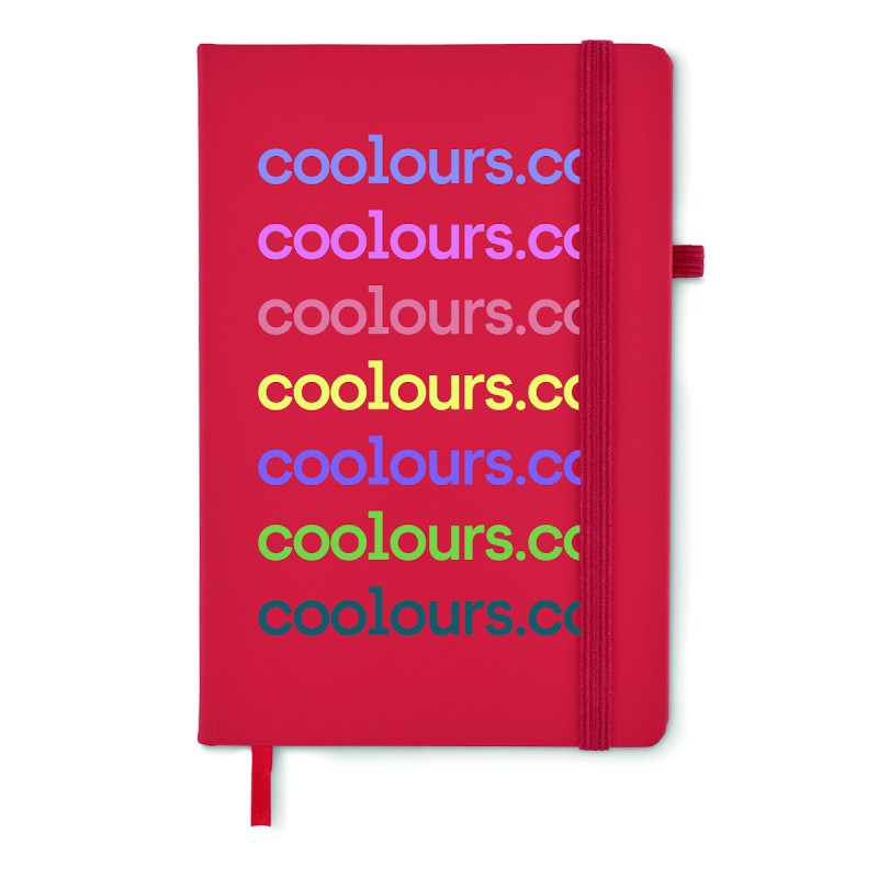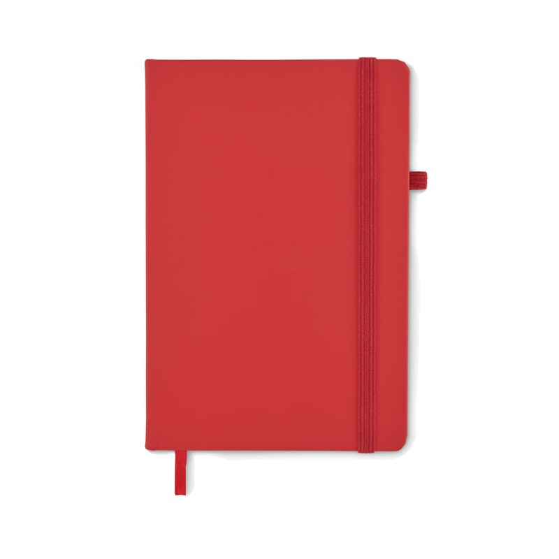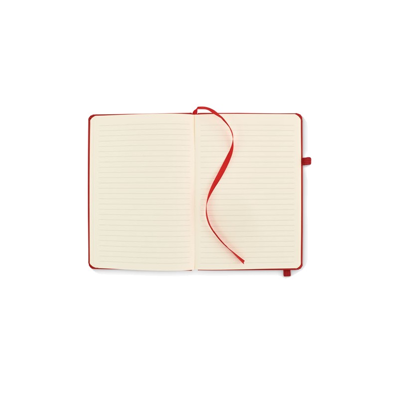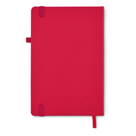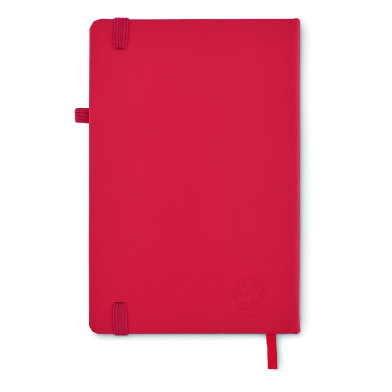 Carnet A5 avec couverture en cuir pré-consommation recyclé à 70 % et en latex PU à 30 %. 192 pages lignées en papier recyclé (96 feuilles). Fermeture élastique en coton et porte-stylo assortis.
