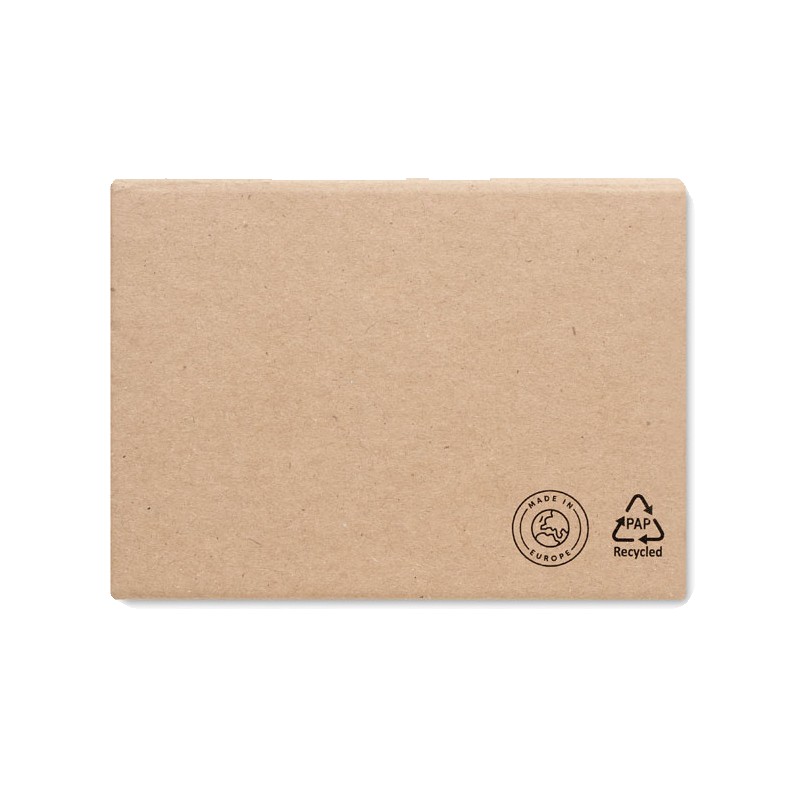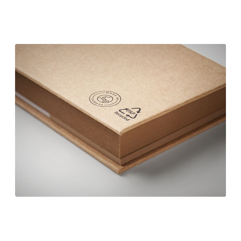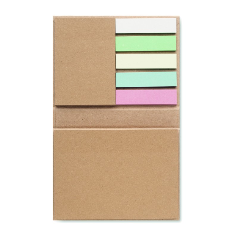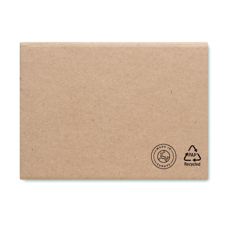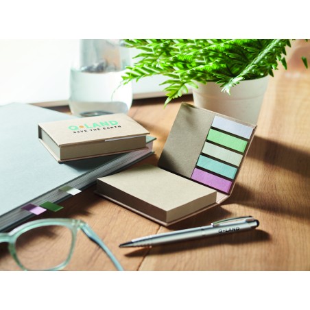 Bloc-notes adhésif 3 pièces en papier recyclé. Blocs de notes adhésives grand et moyen et 5 marqueurs de pages de couleurs assorties. Fabriqué dans l'UE.