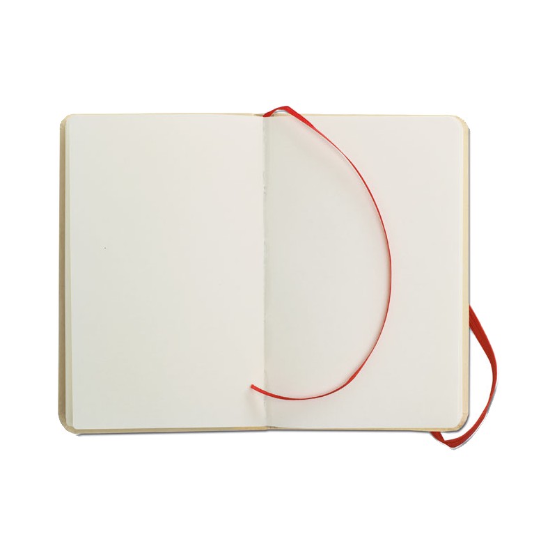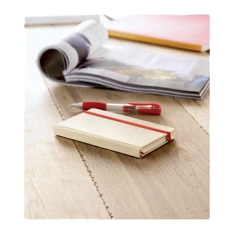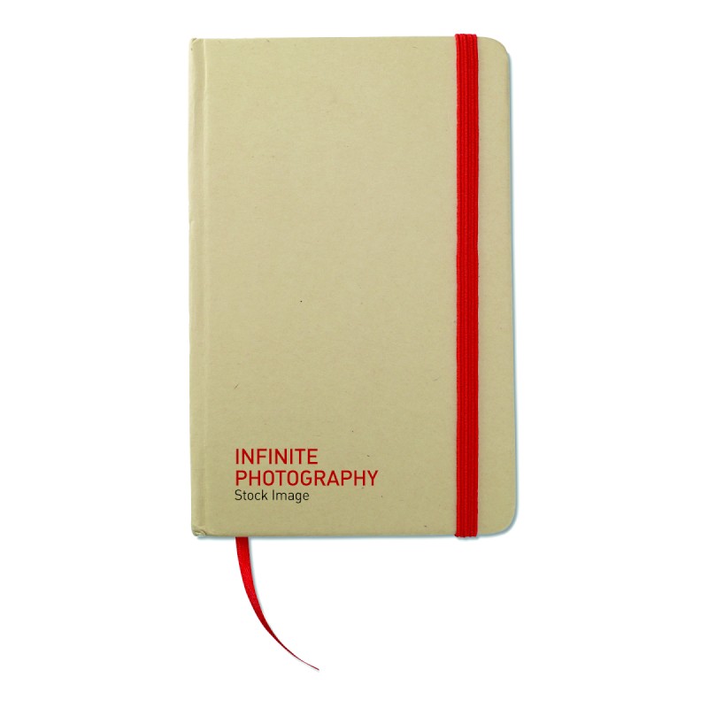 Carnet A6 à couverture rigide en papier recyclé. Reliure dos collé. 192 pages en papier recyclé ordinaire (96 feuilles). Fermeture élastique et marque-page en ruban. FSC®-certified | FSC MIX CREDIT, P7.1, FSC-C213206